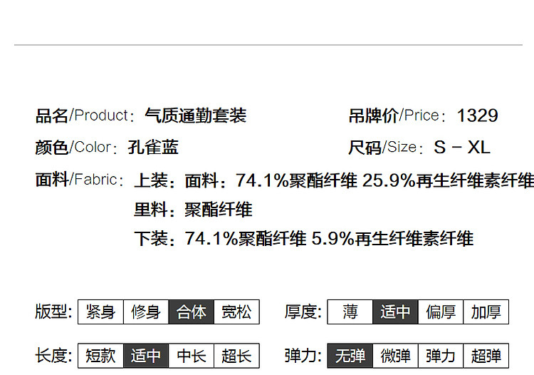 商品名称:【通勤西服套装】春秋季翻领西服平腰西裤套装女时尚 025281