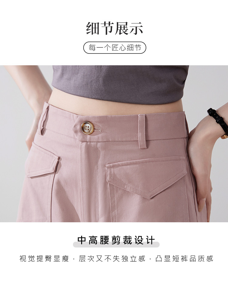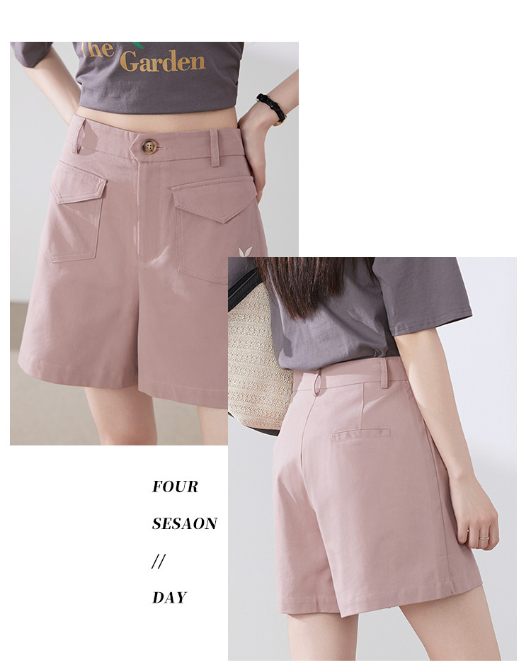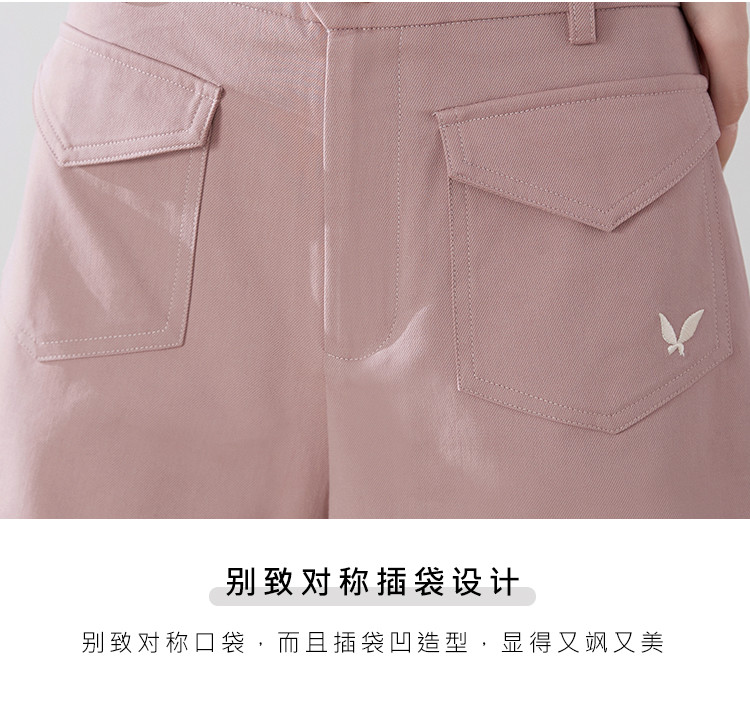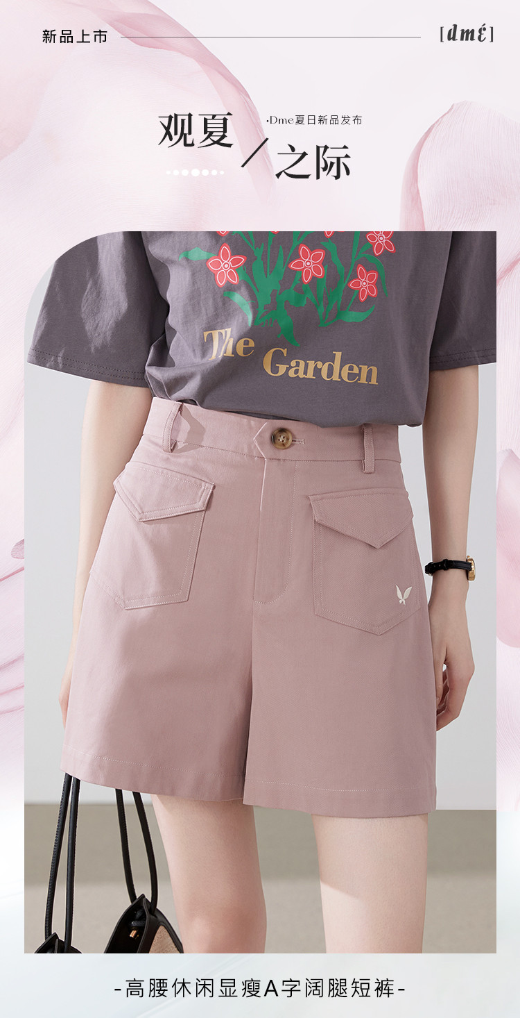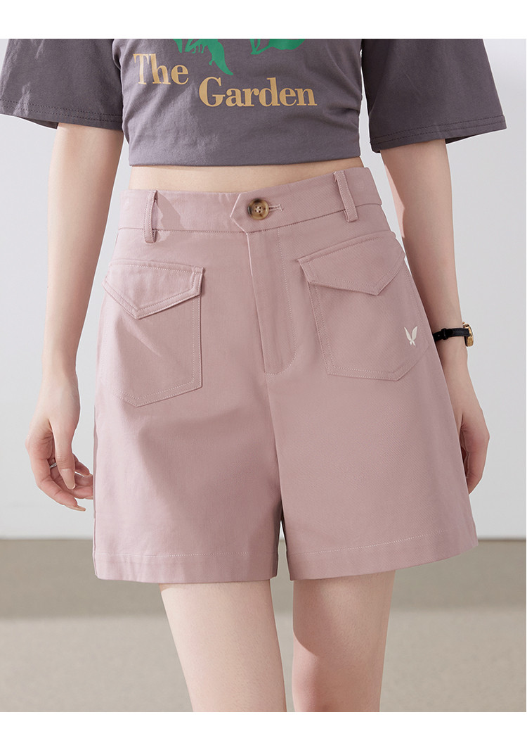 【精致蝴蝶刺绣】A字高腰显瘦阔腿短裤翻盖口袋设计女款休闲短裤 048385