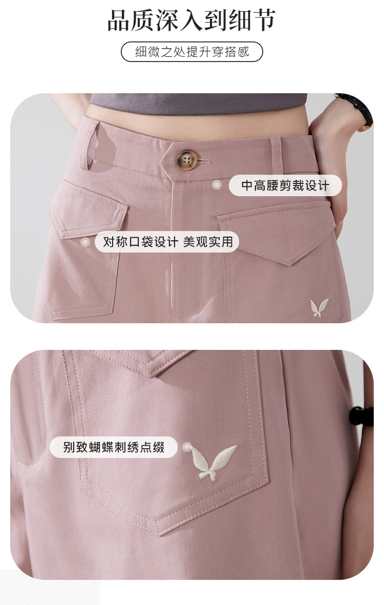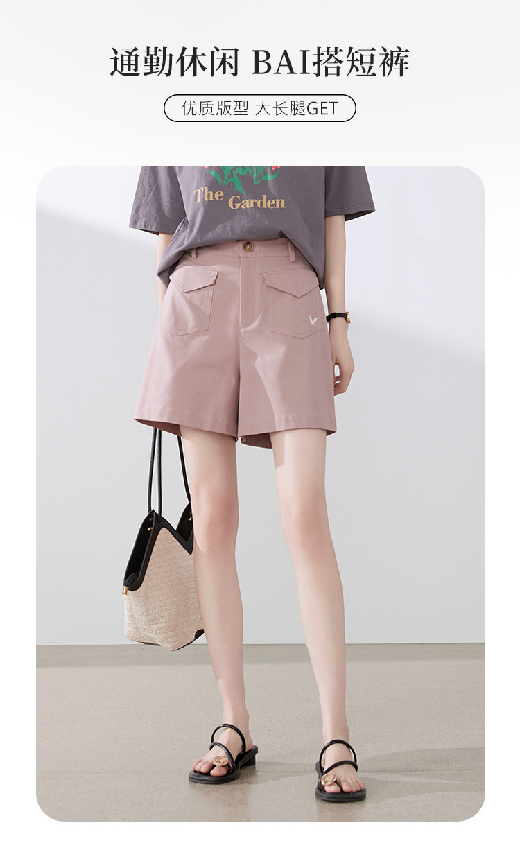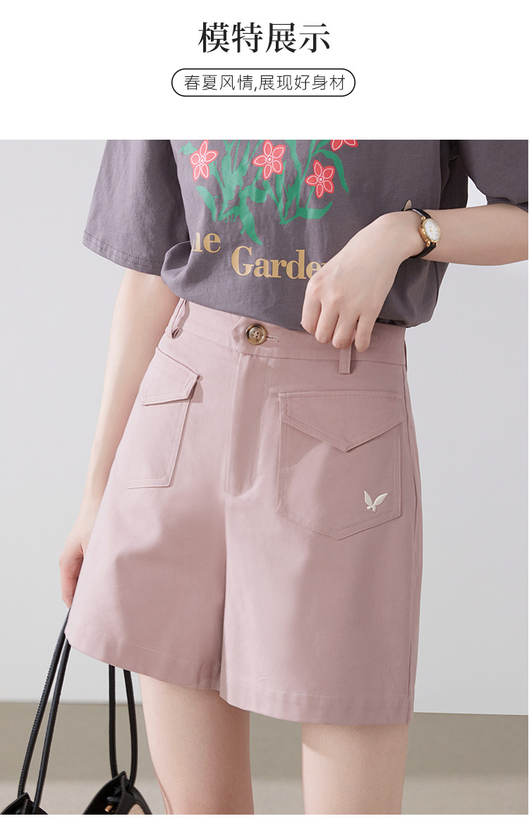 商品名称:【精致蝴蝶刺绣】A字高腰显瘦阔腿短裤翻盖口袋设计女款休闲短裤 048385