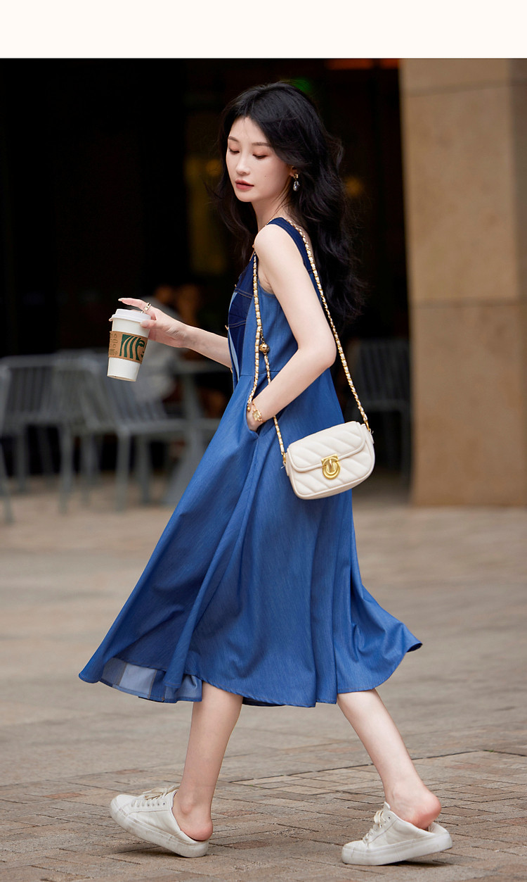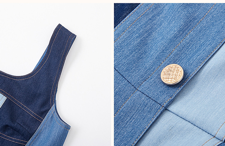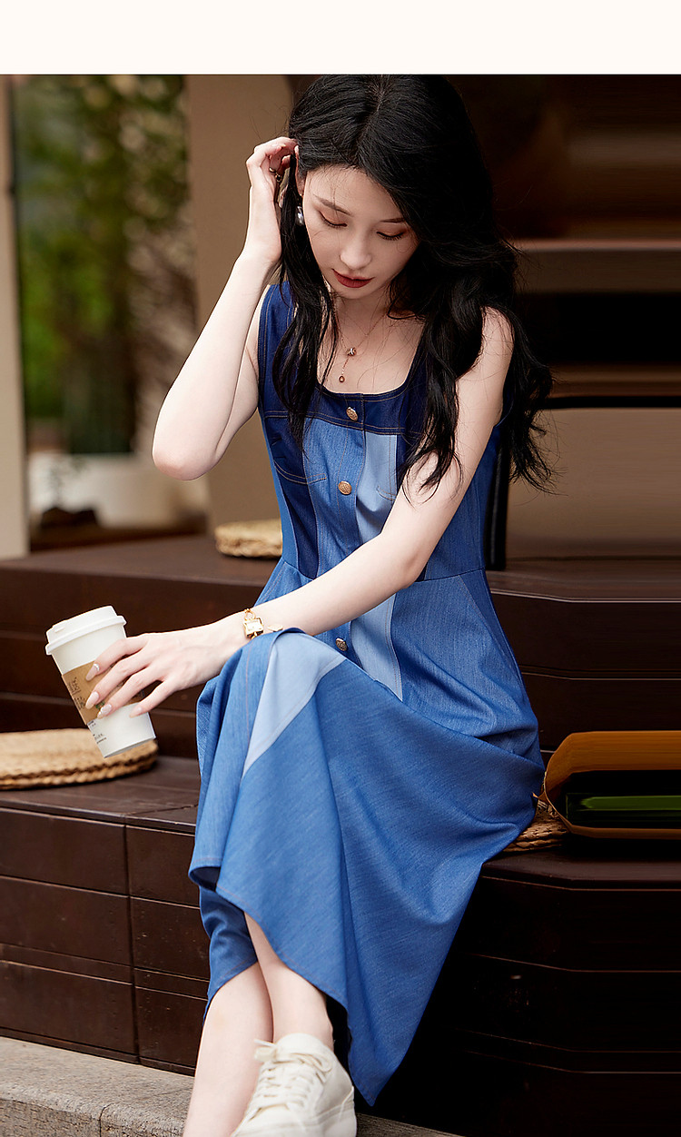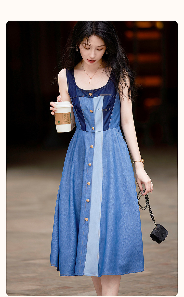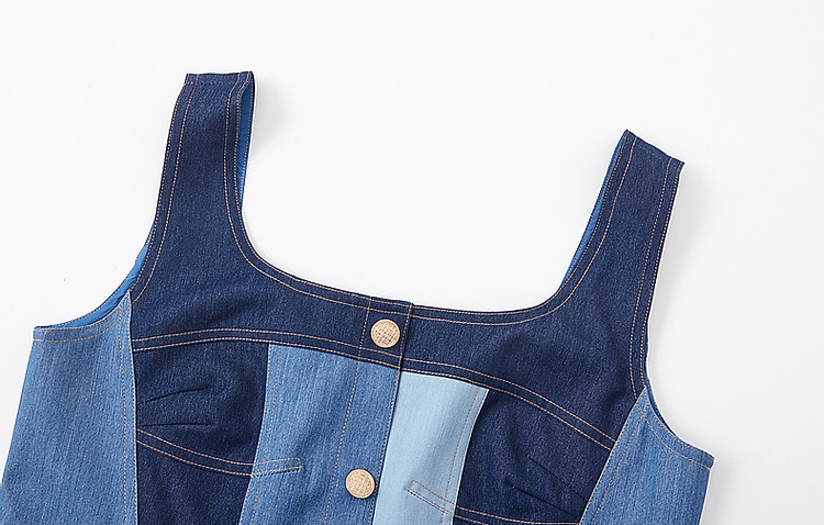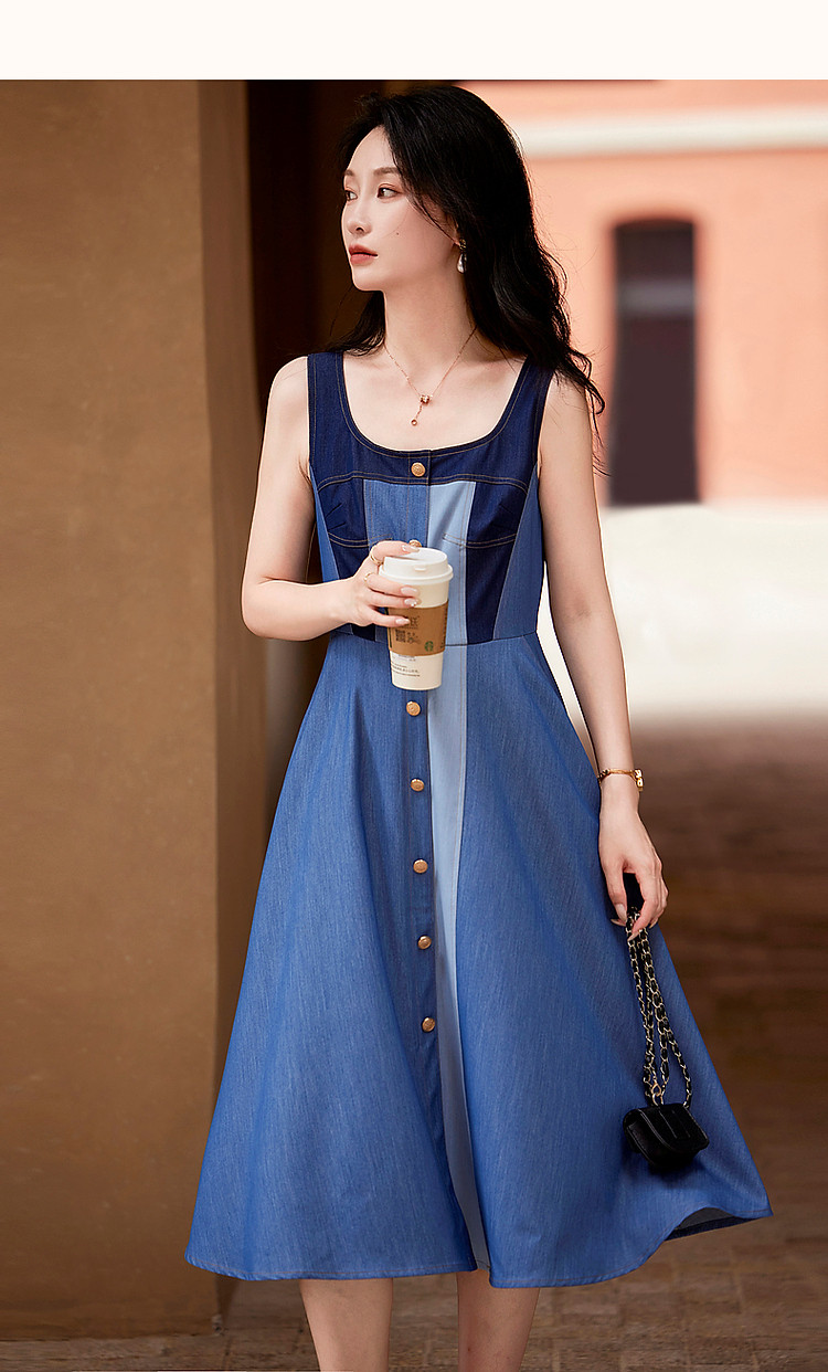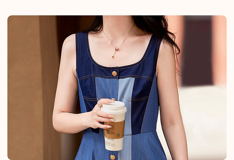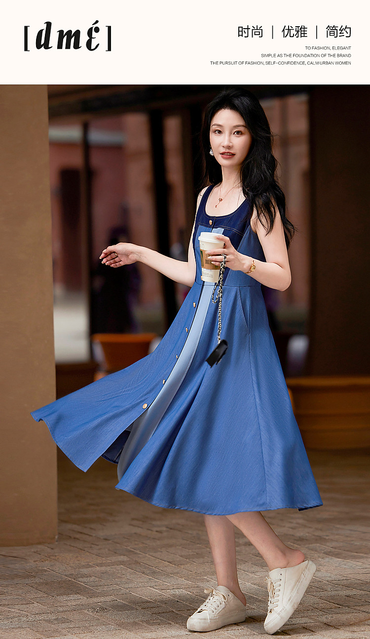 商品名称:【都市轻奢仿牛仔】夏通勤圆领无袖拼接背心裙撞色明线连衣裙 221889