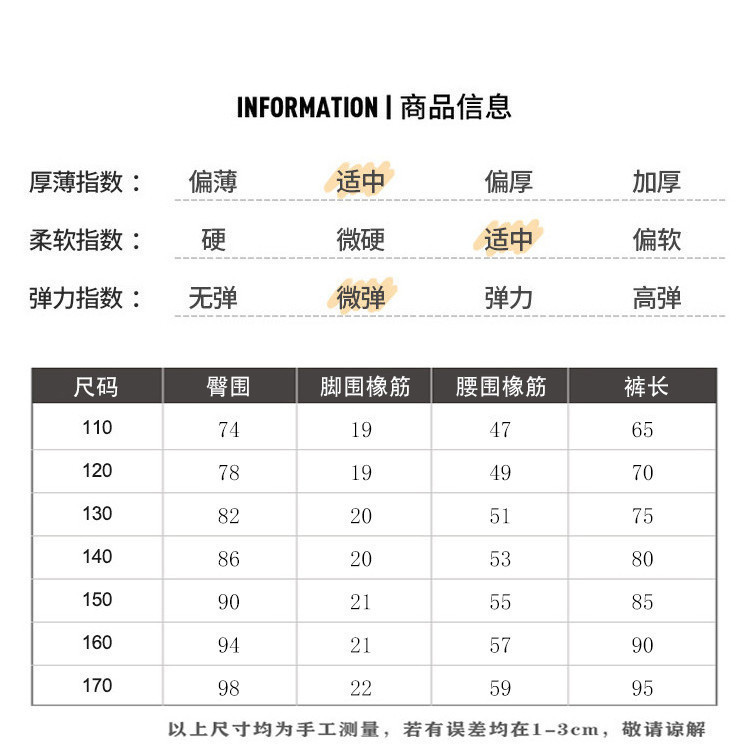 尺码 身高(cm) 腰围(cm) 裤长(cm) 臀围(cm) 适合年龄 号型
