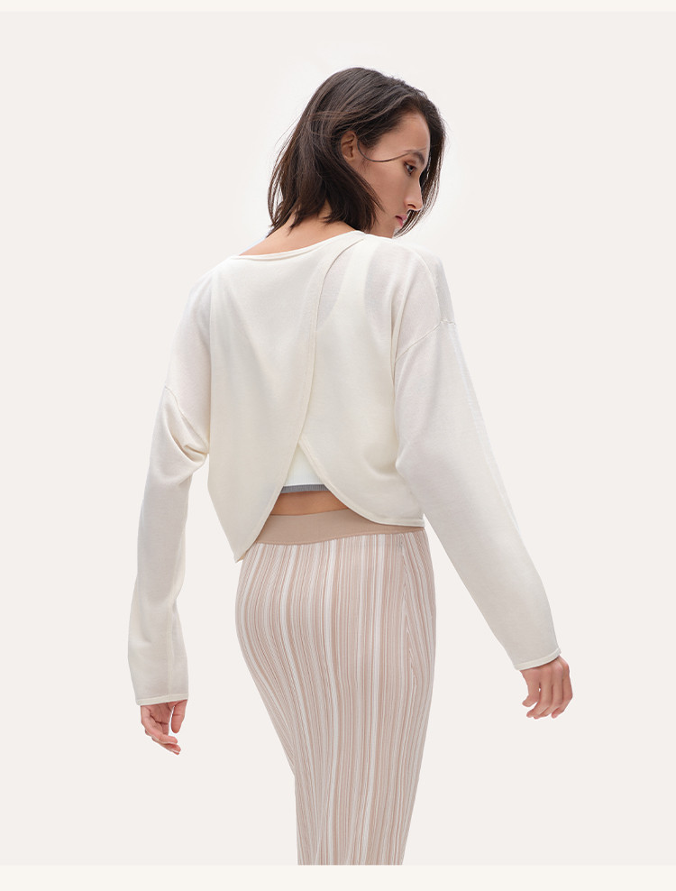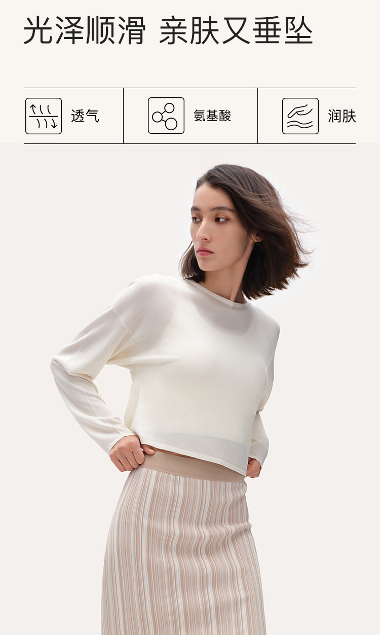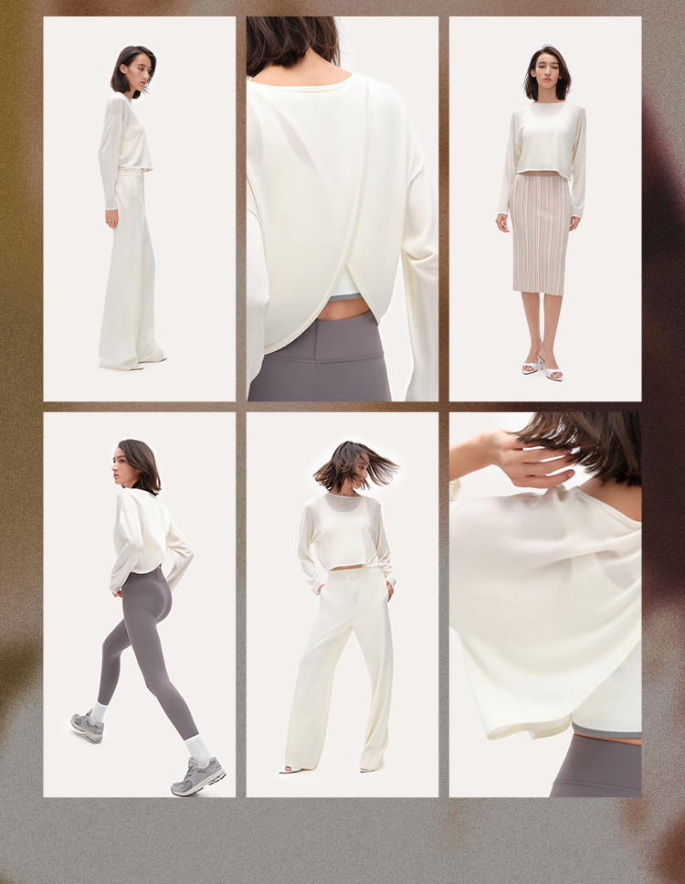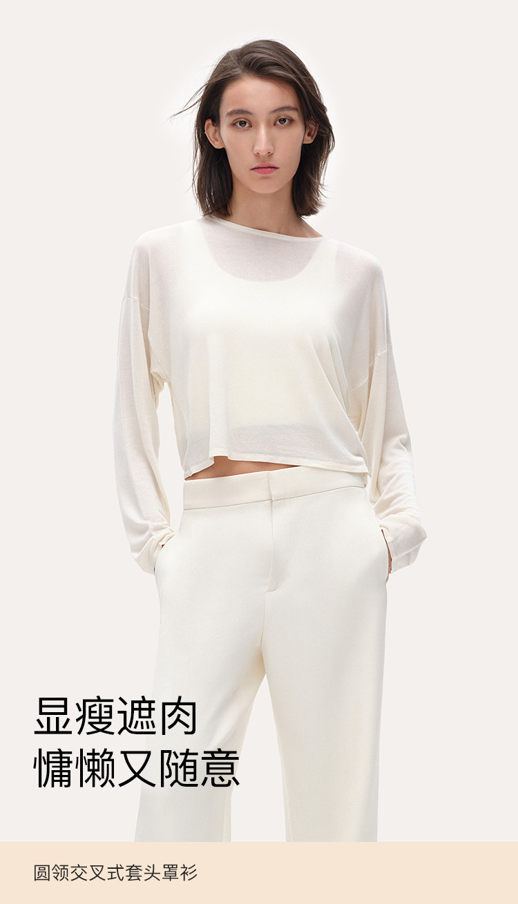 商品名称:【透气显瘦】圆领交叉式套头长袖打底衫T恤薄款亲肤宽松舒适女款 094976