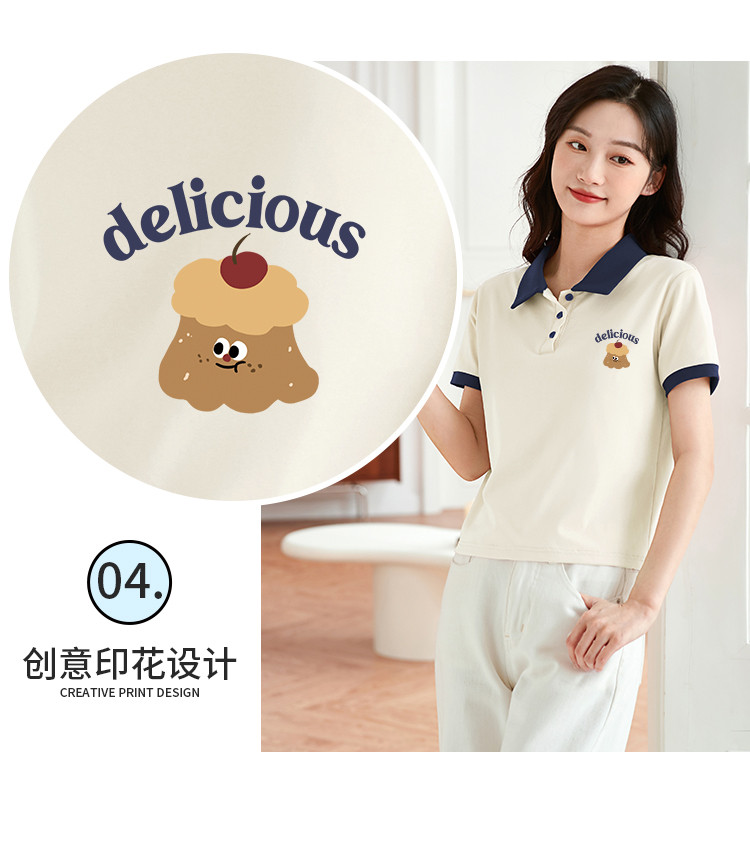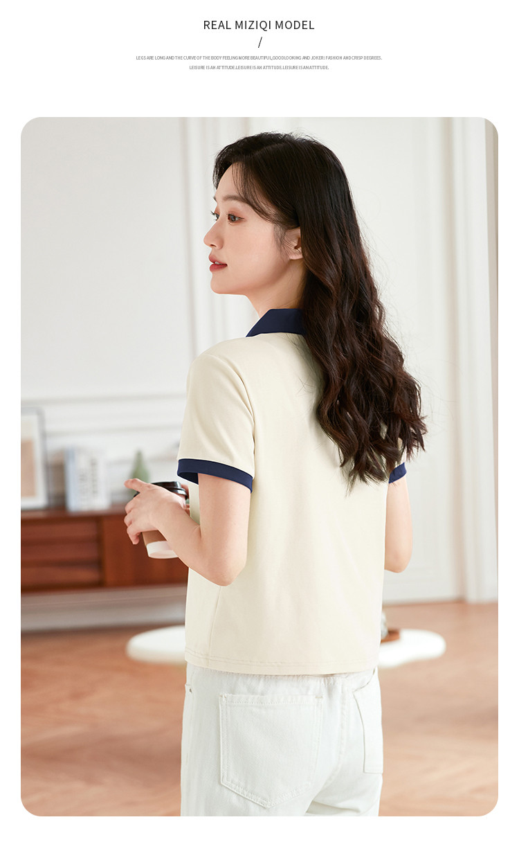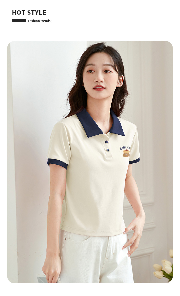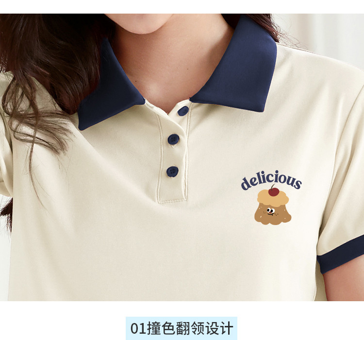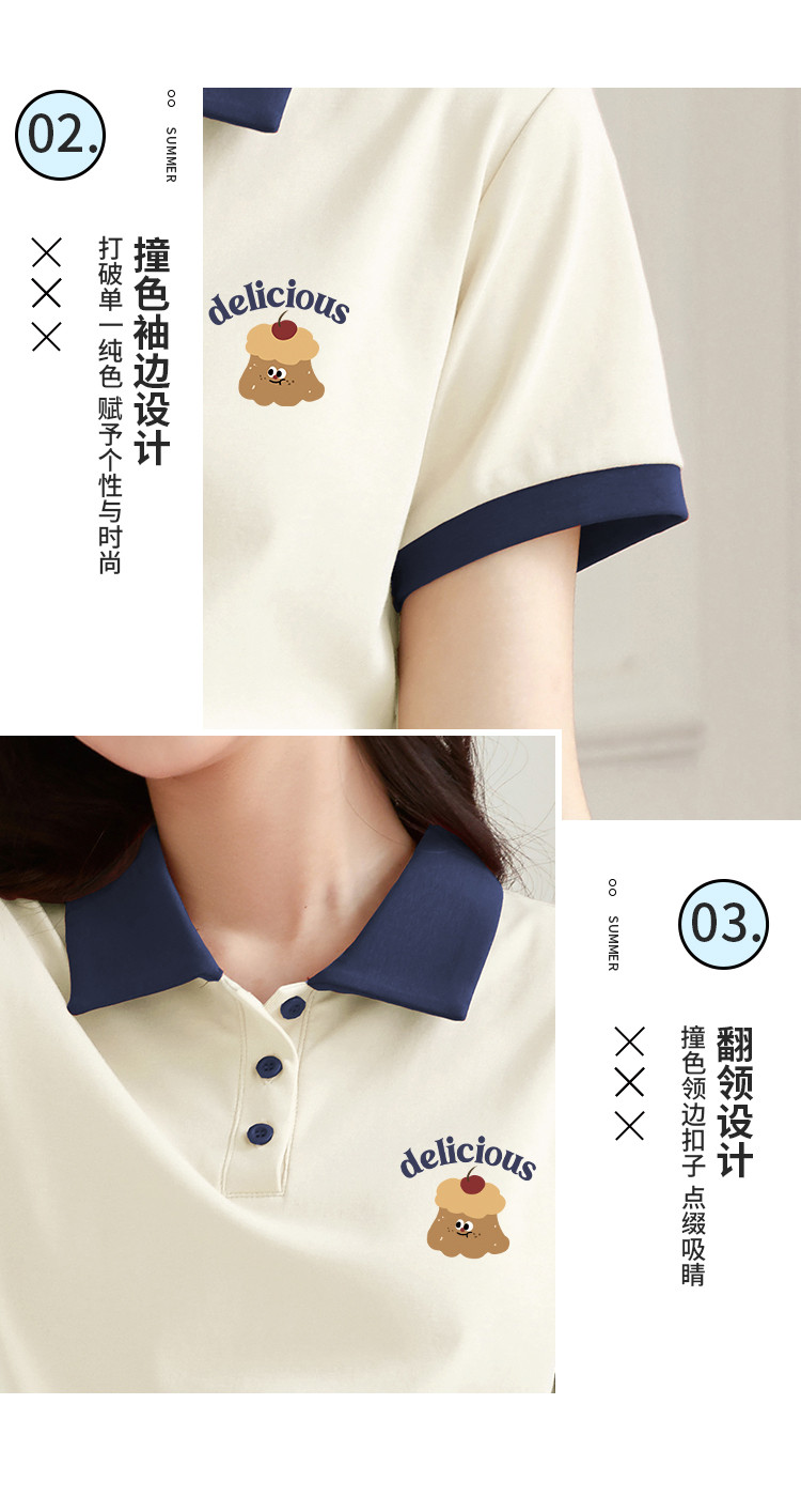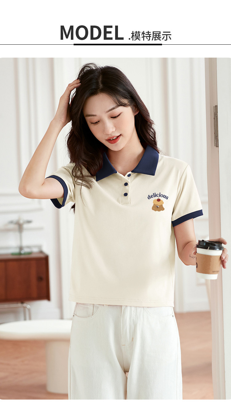 商品名称:米子旗趣味卡通印花polo衫夏季女撞色设计简约休闲短袖上衣 264218