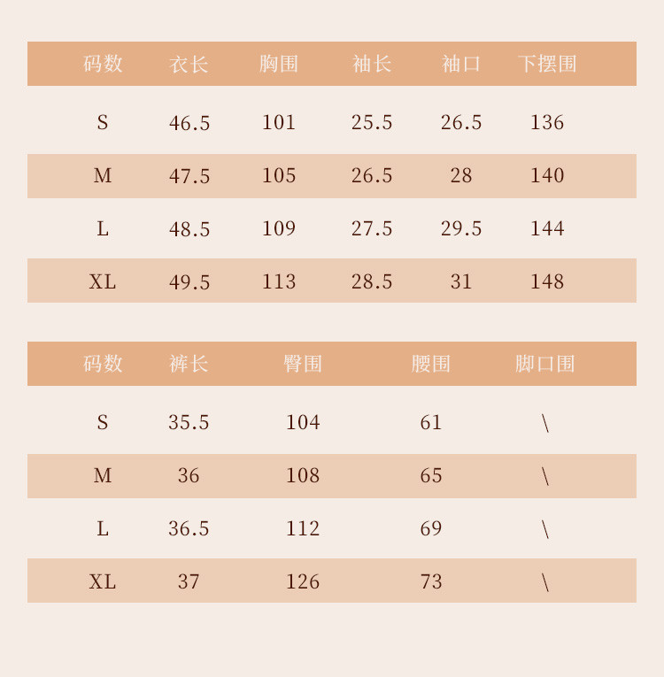 | 尺码 | 袖长(cm) | 上装号型 | 下装号型 | 衣长(cm) | 身高(cm) | 腰围(cm) | 裤长(cm) | 体重(kg) | 臀围(cm) | 胸围(cm) | 号型 |