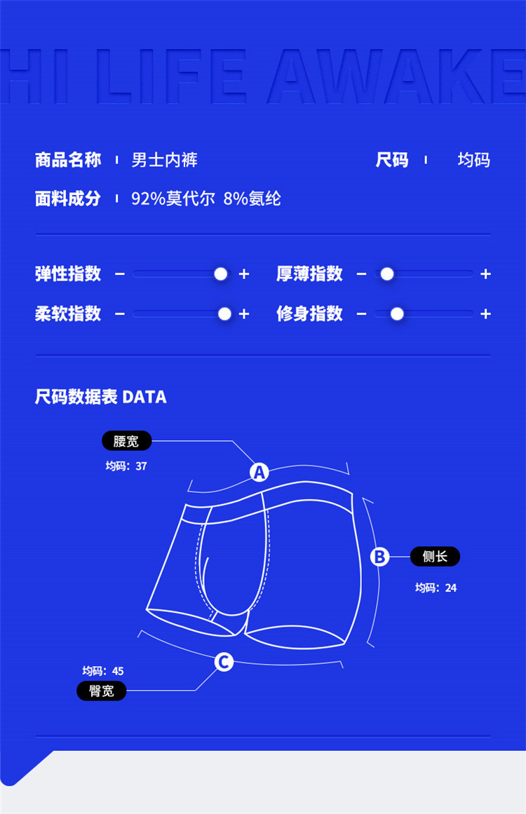 商品名称:【超值捡漏 莫代尔无痕】3条装男士平角内裤男抑菌透气四角短裤 546330