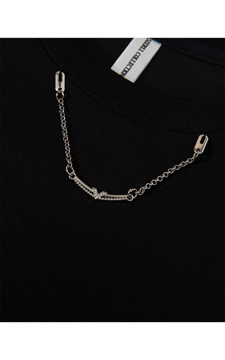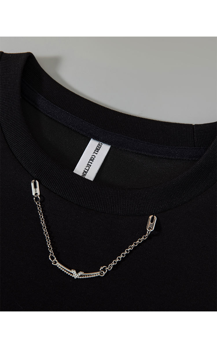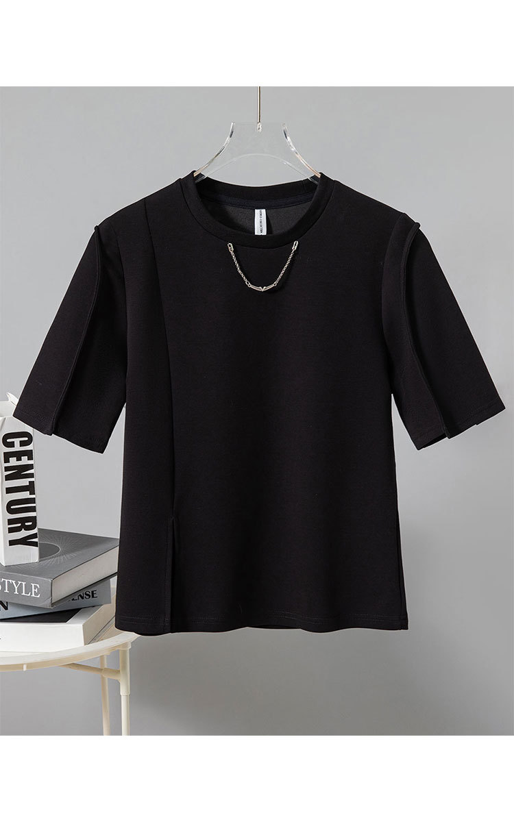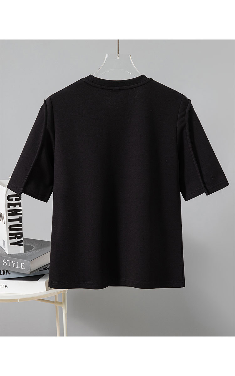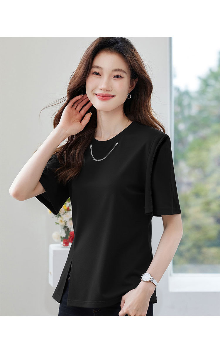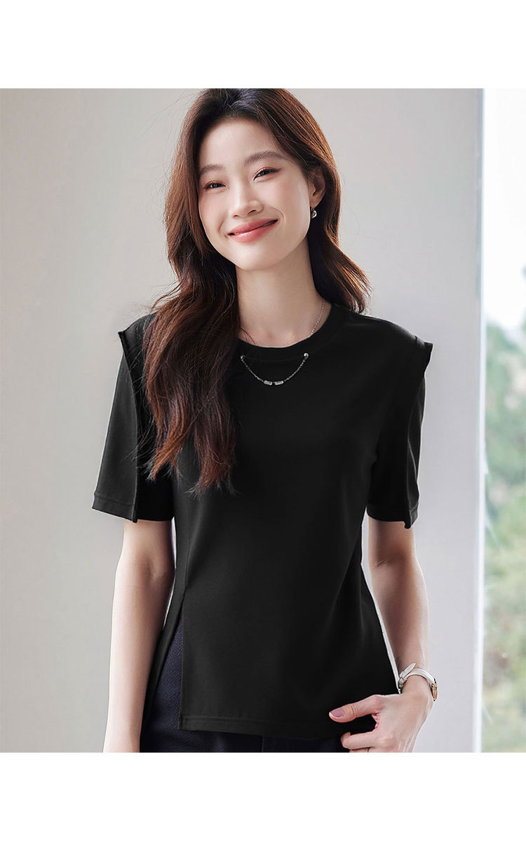商品名称:正肩t恤女短袖夏季圆领体恤设计感别致下摆开叉上衣女 329247
