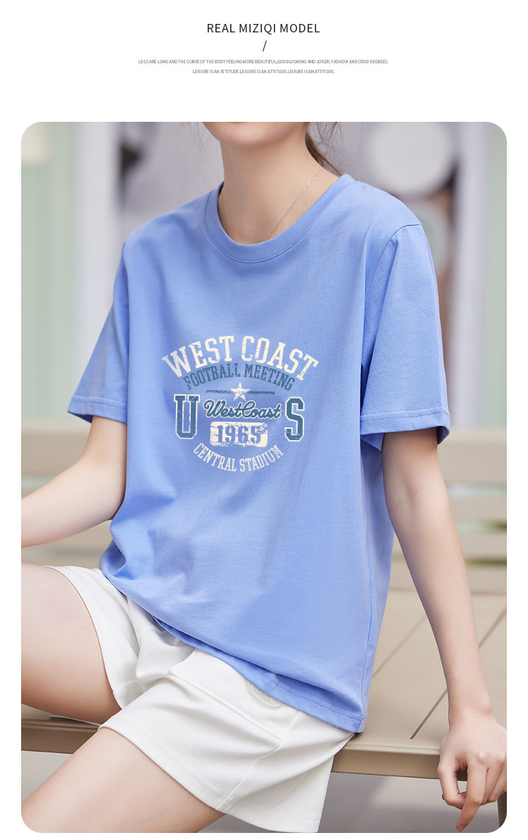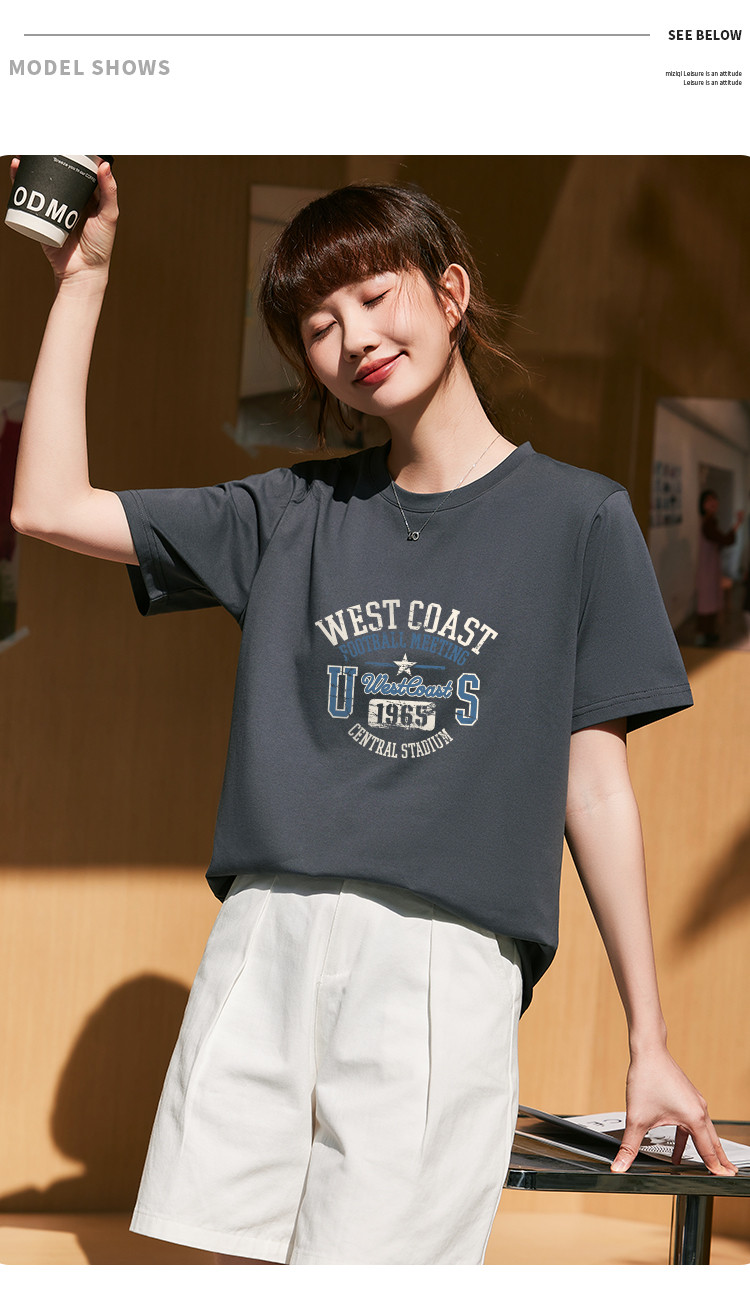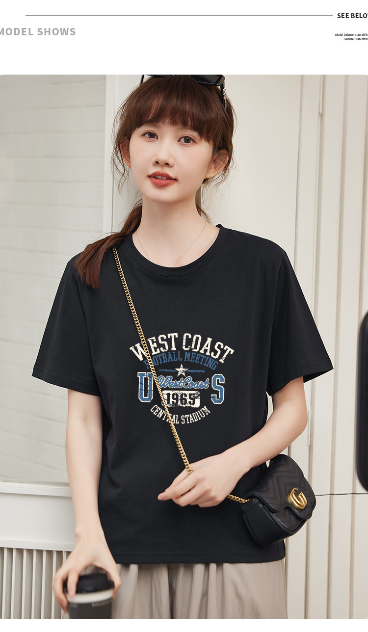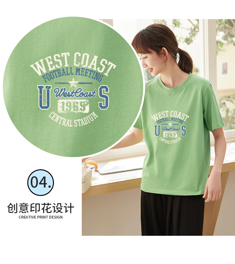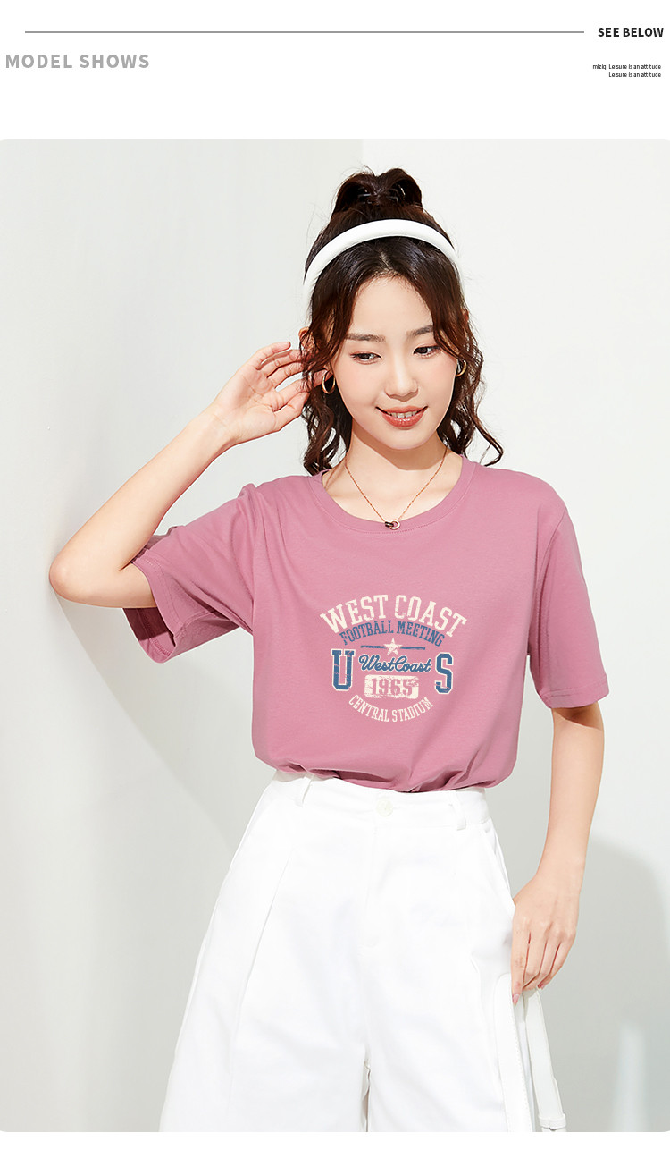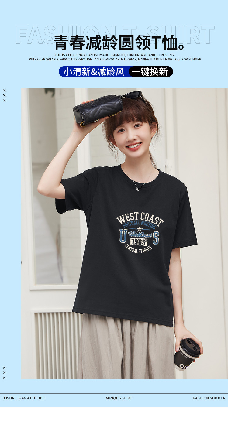 商品名称:米子旗创意印花圆领T恤夏季女简约百搭宽松短袖上衣 481306