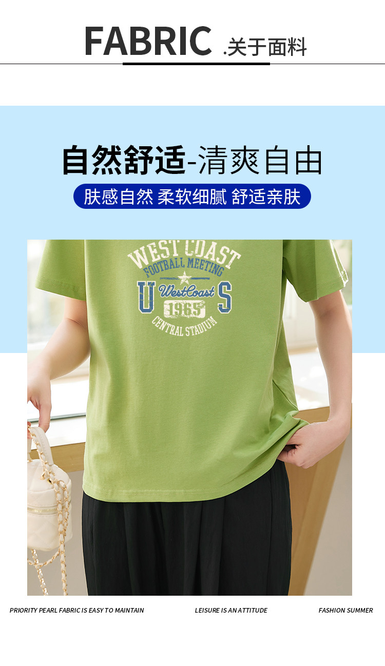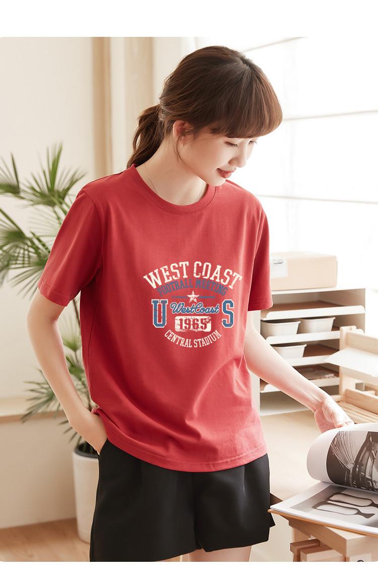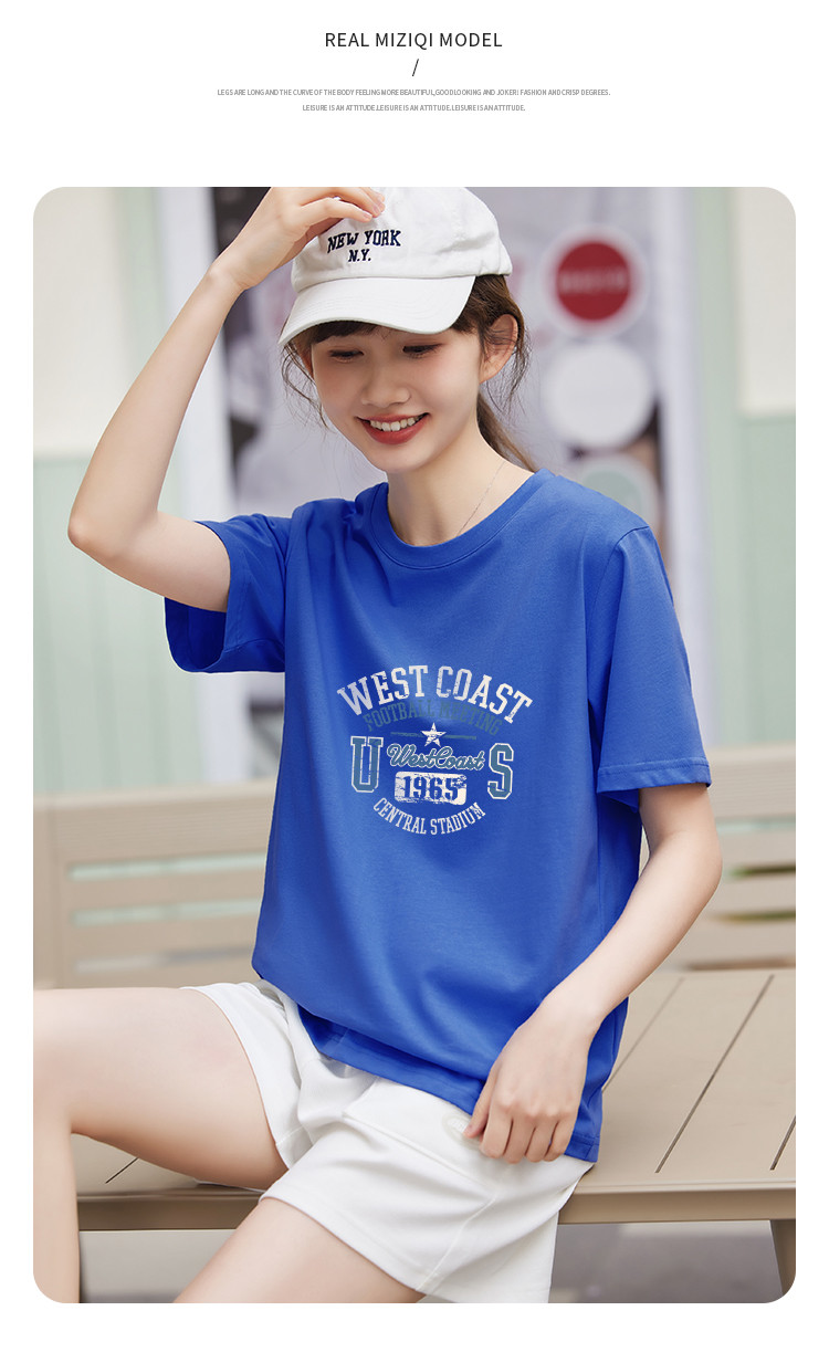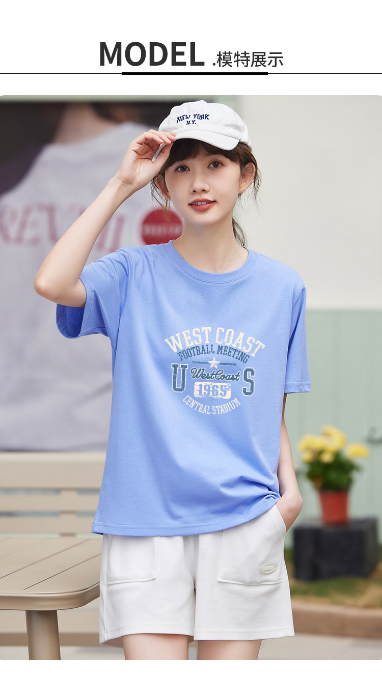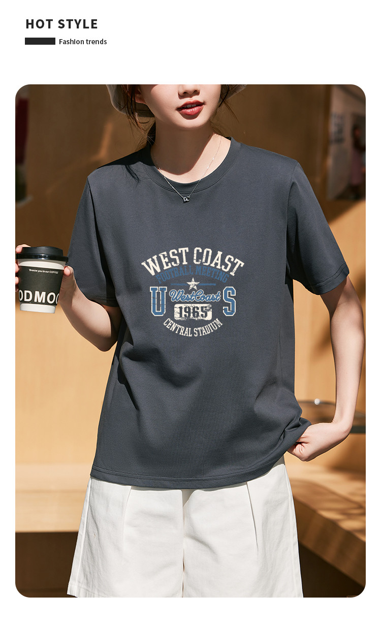 商品名称:米子旗创意印花圆领T恤夏季女简约百搭宽松短袖上衣 481306