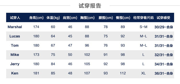 | 尺码 | 大腿围(cm) | 腰围(cm) | 裤长(cm) | 臀围(cm) | 号型 |
