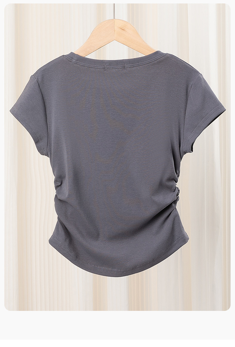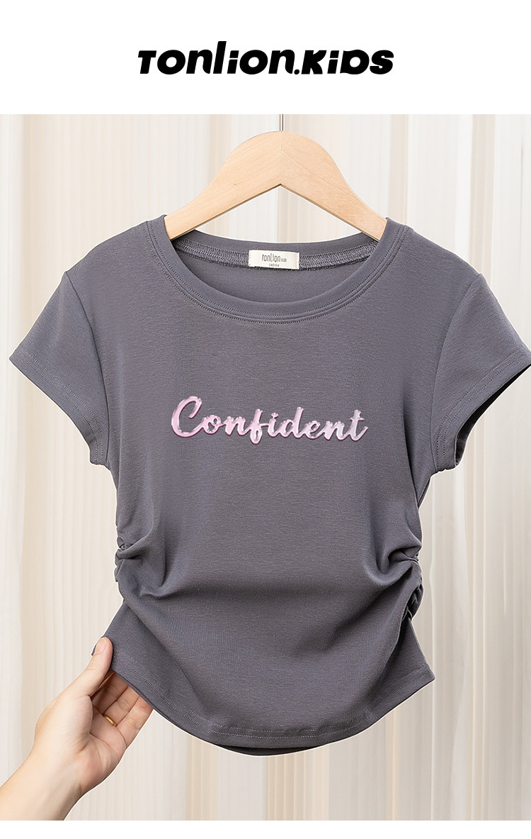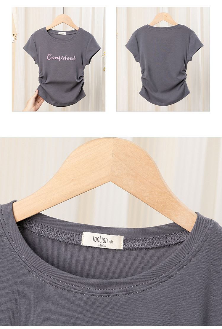 【收褶显瘦】春秋款运动休闲儿童圆领上衣女童文字印花短袖T恤 210767