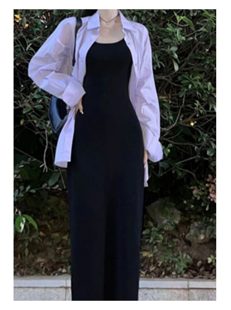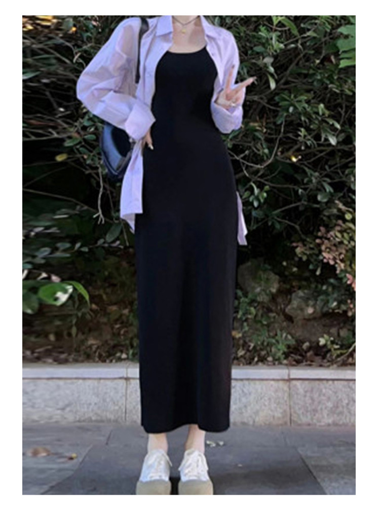 U领针织吊带裙女纯欲温柔打底裙温柔直筒裙子 356803