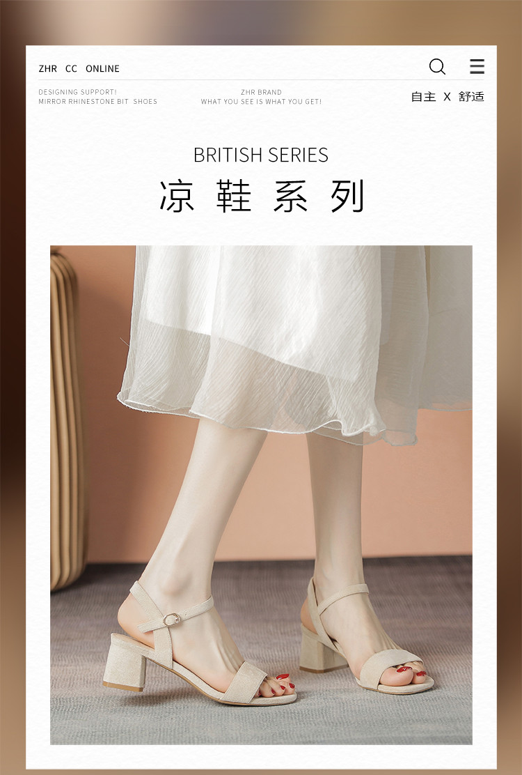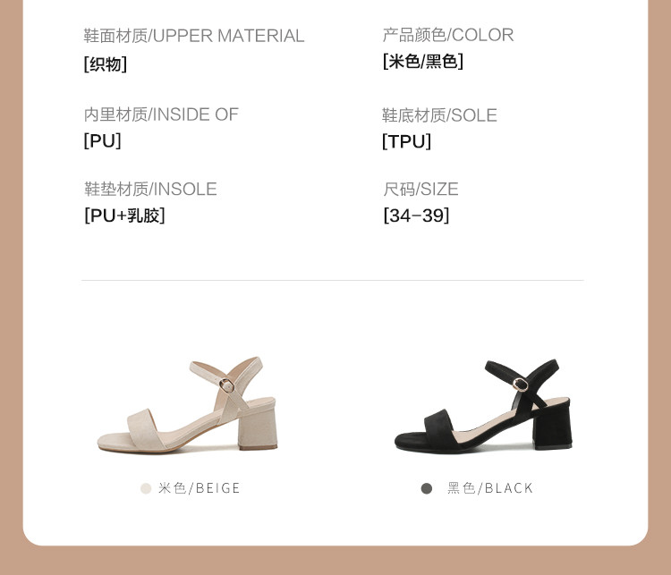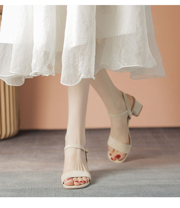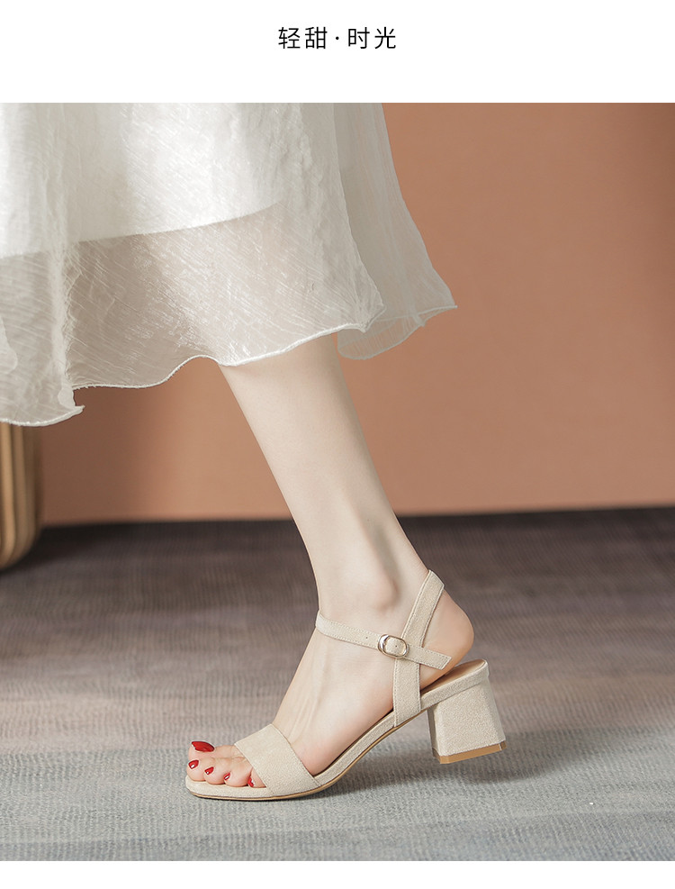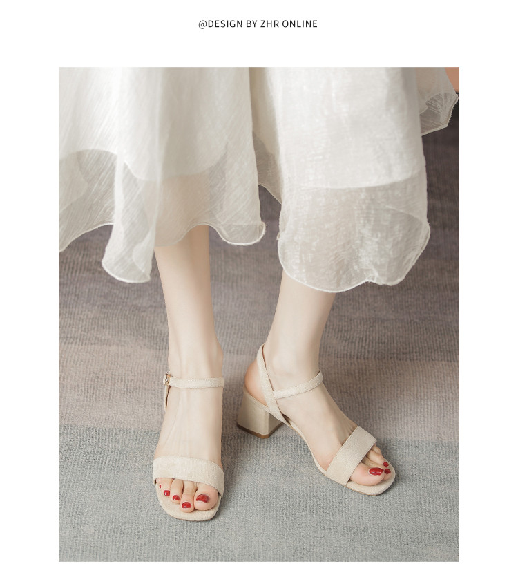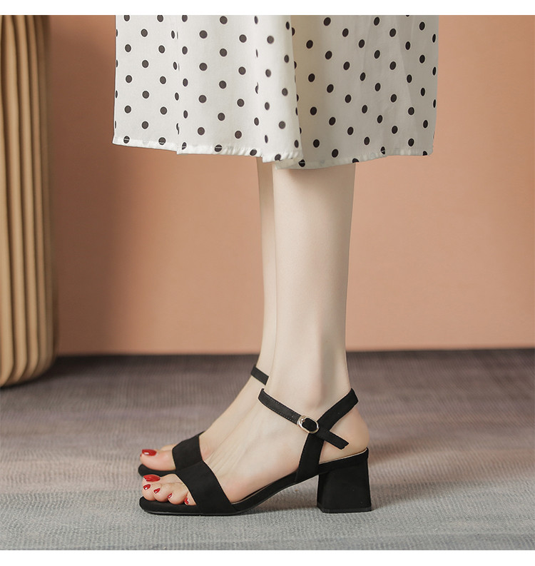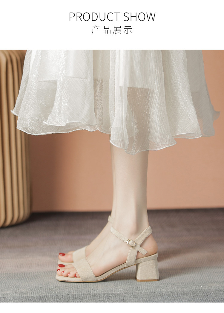 商品名称:【气质方头】高级一字带凉鞋百搭高跟粗跟凉鞋女士凉鞋夏季女凉鞋 070080