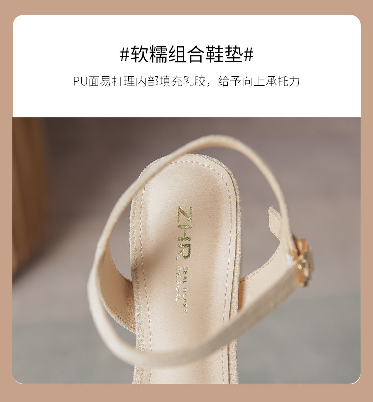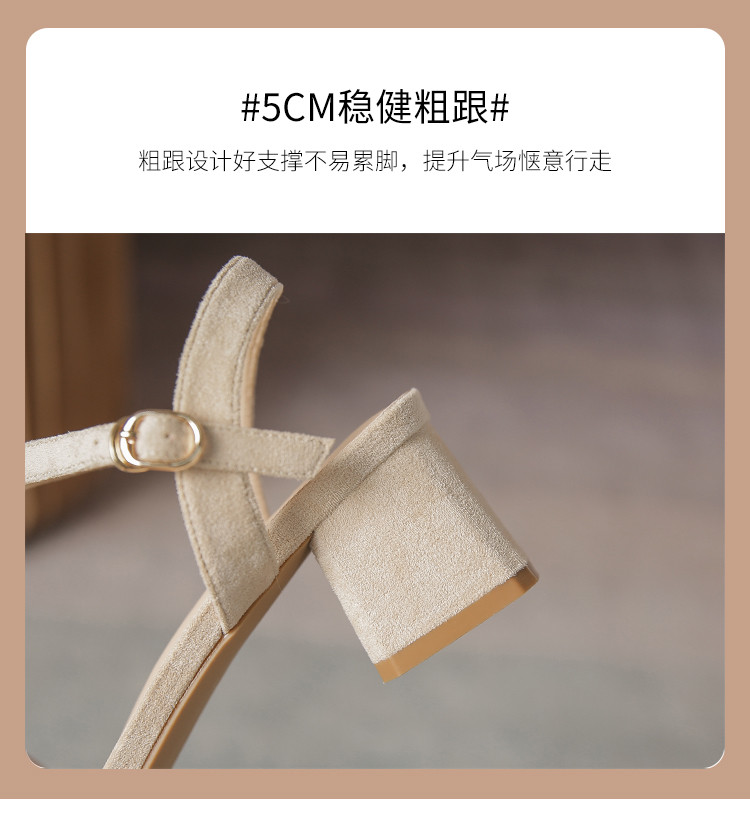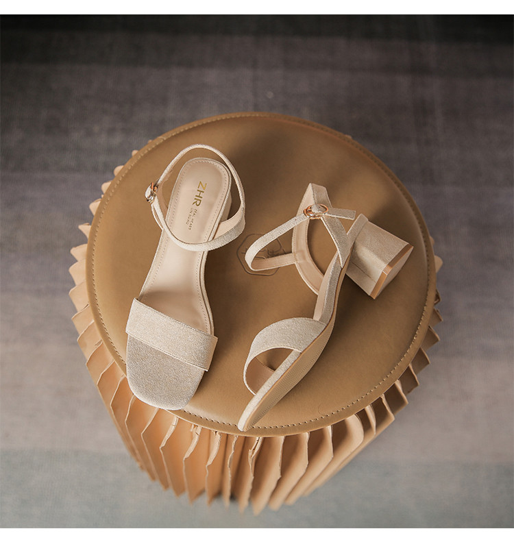 【气质方头】高级一字带凉鞋百搭高跟粗跟凉鞋女士凉鞋夏季女凉鞋 070080