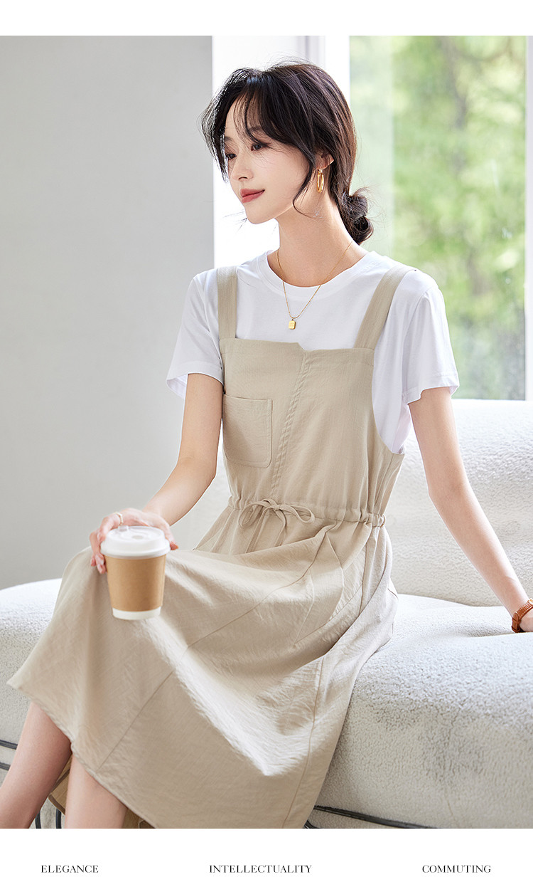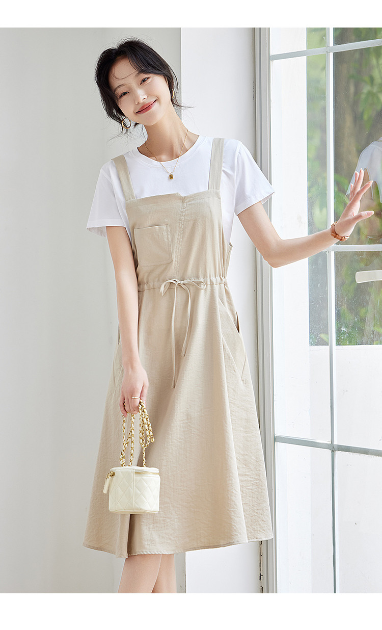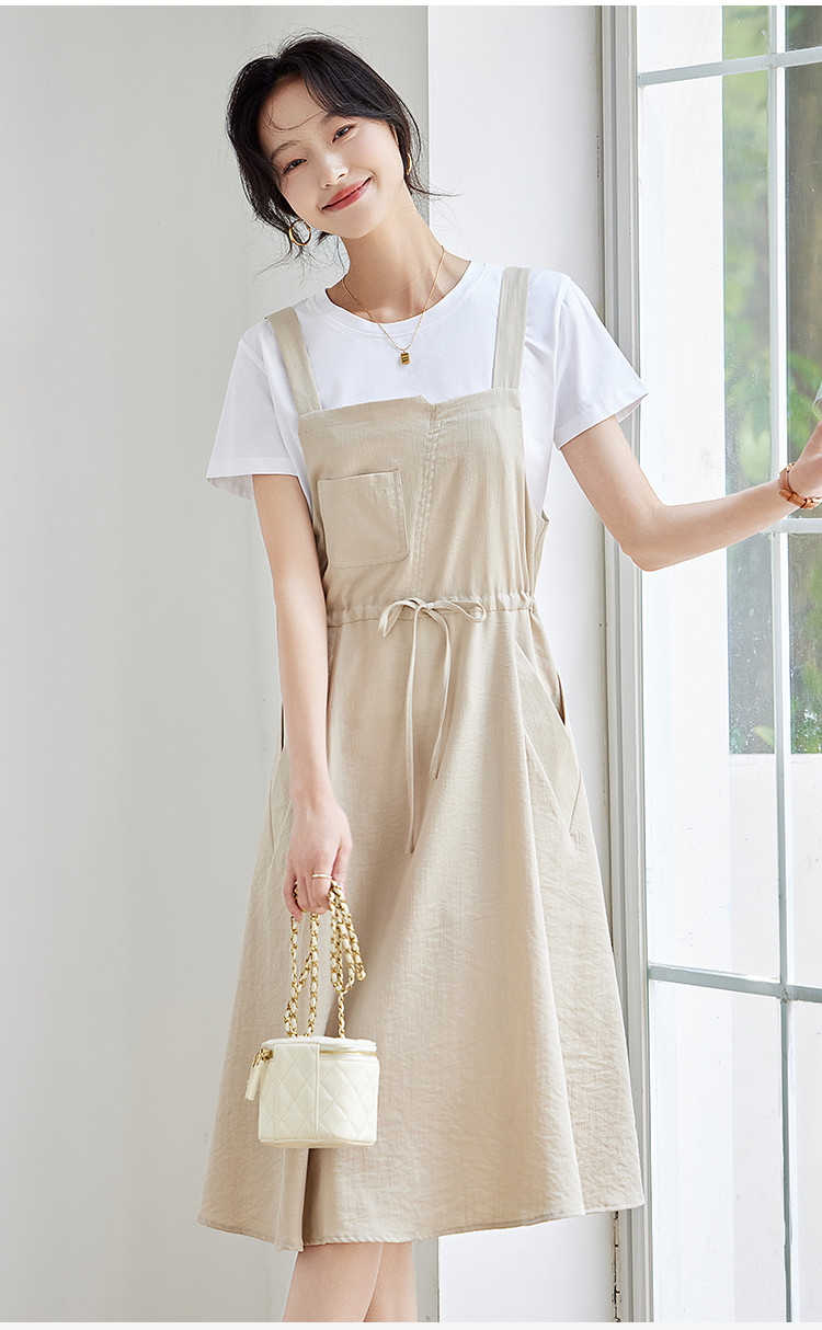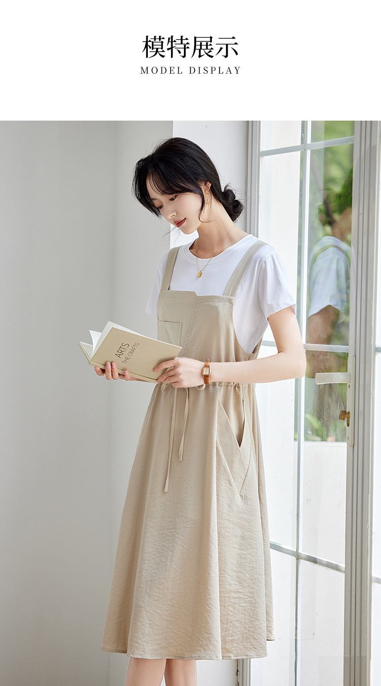 商品名称:连衣裙套装女2025夏季新款收腰瘦轻薄短袖上衣搭背带裙两件套 579736