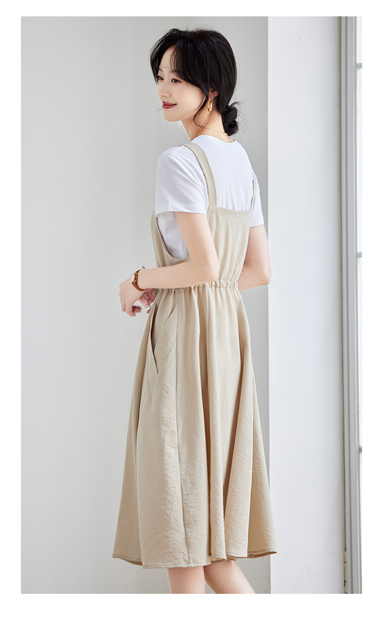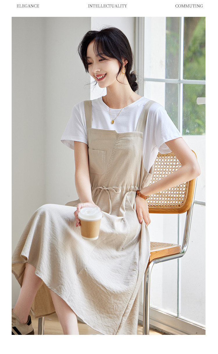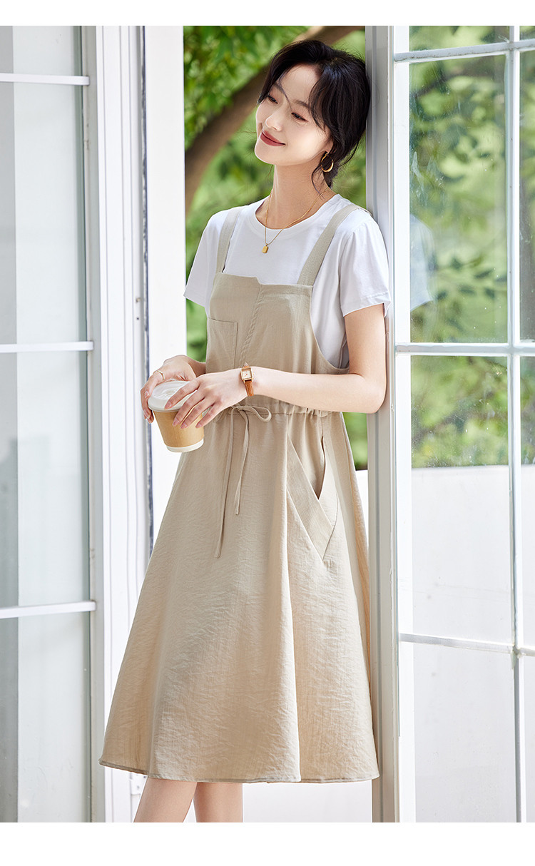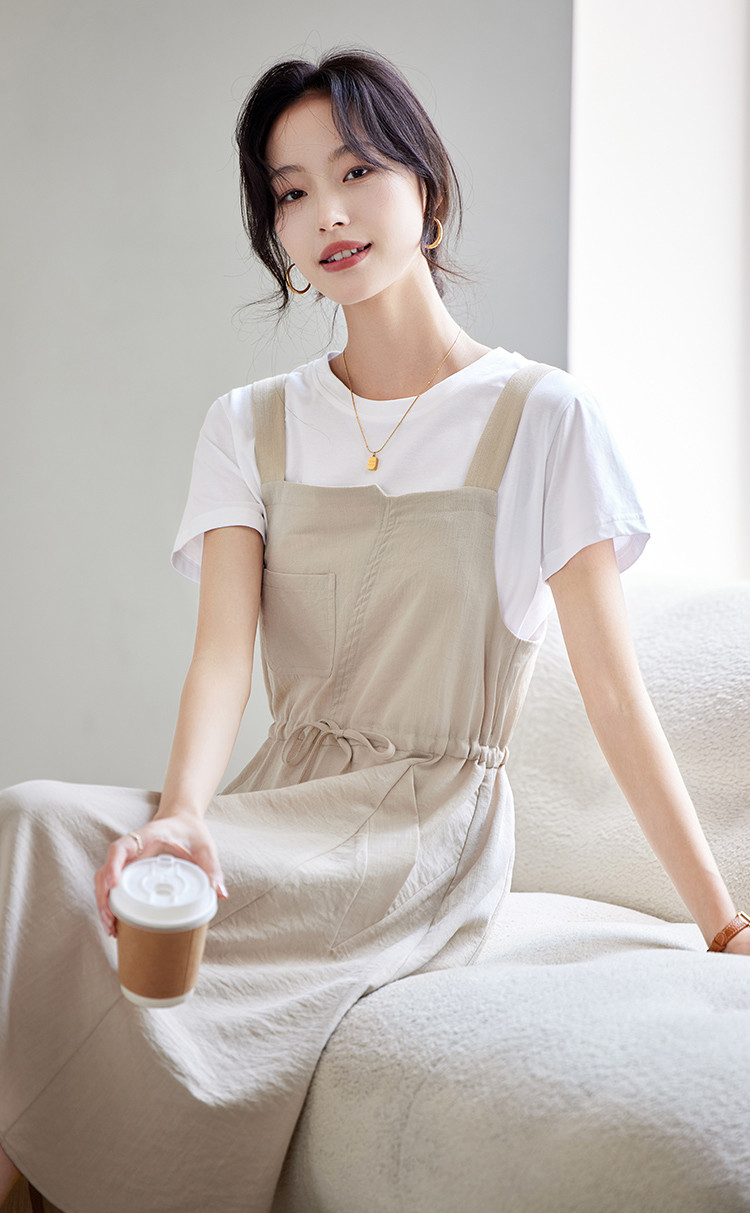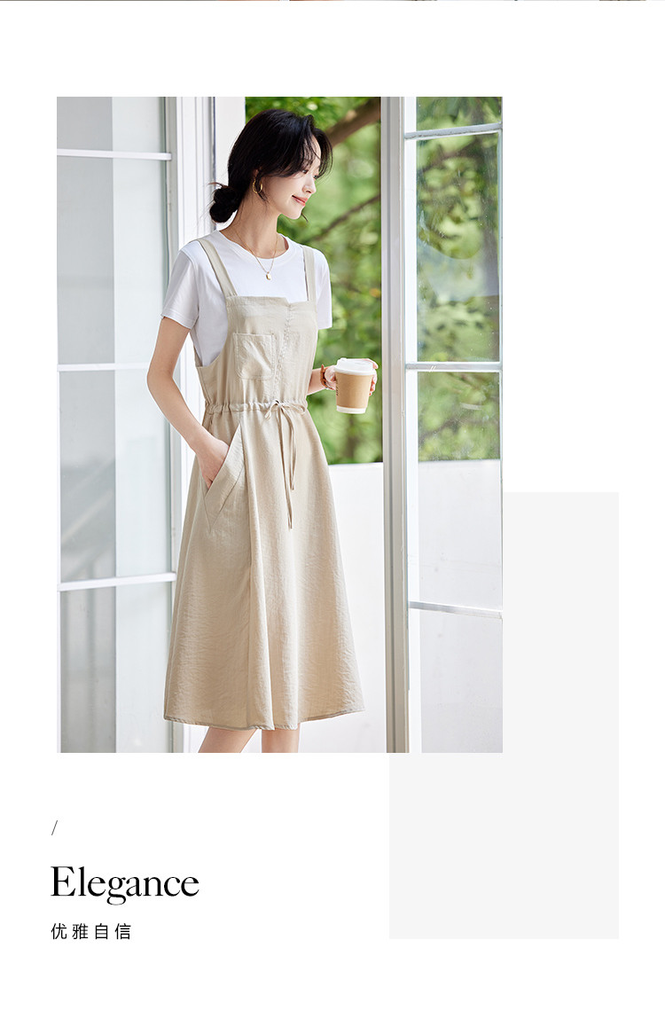 商品名称:连衣裙套装女2025夏季新款收腰瘦轻薄短袖上衣搭背带裙两件套 579736