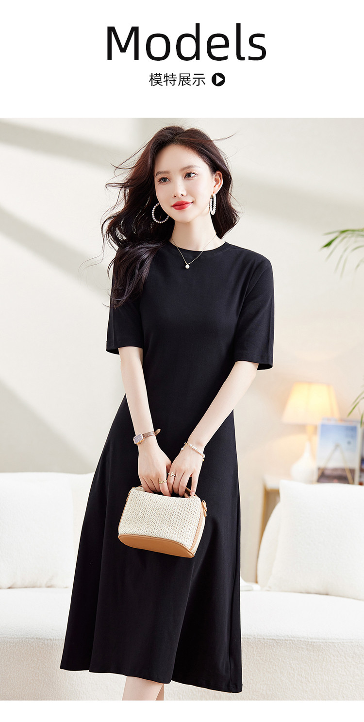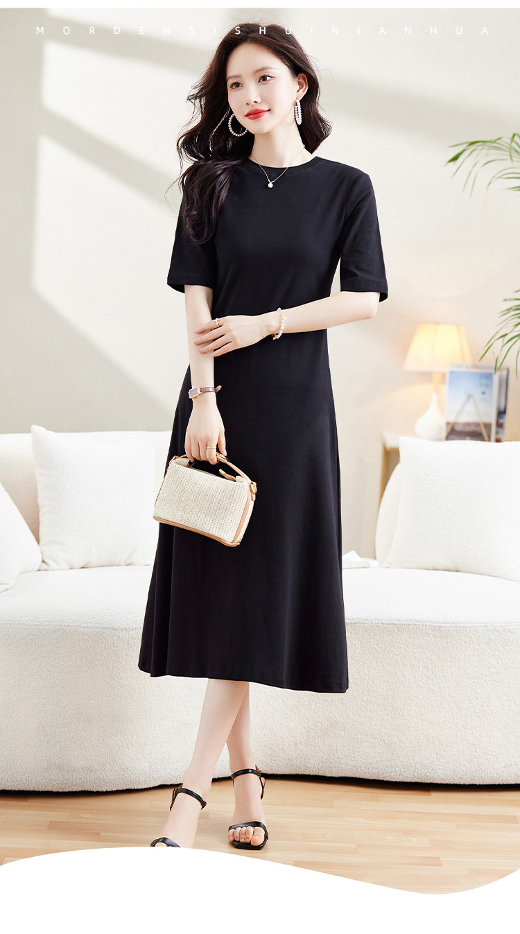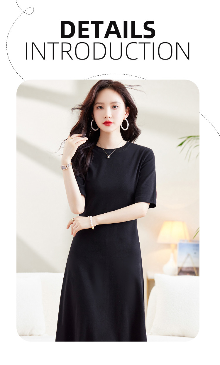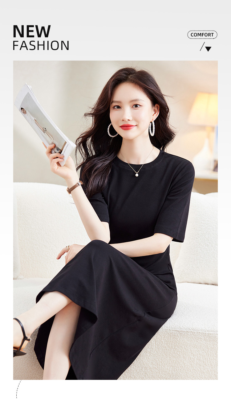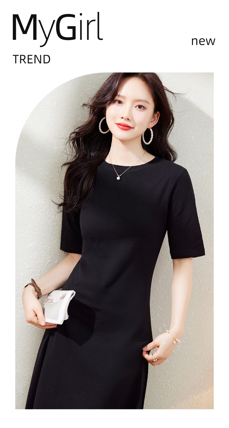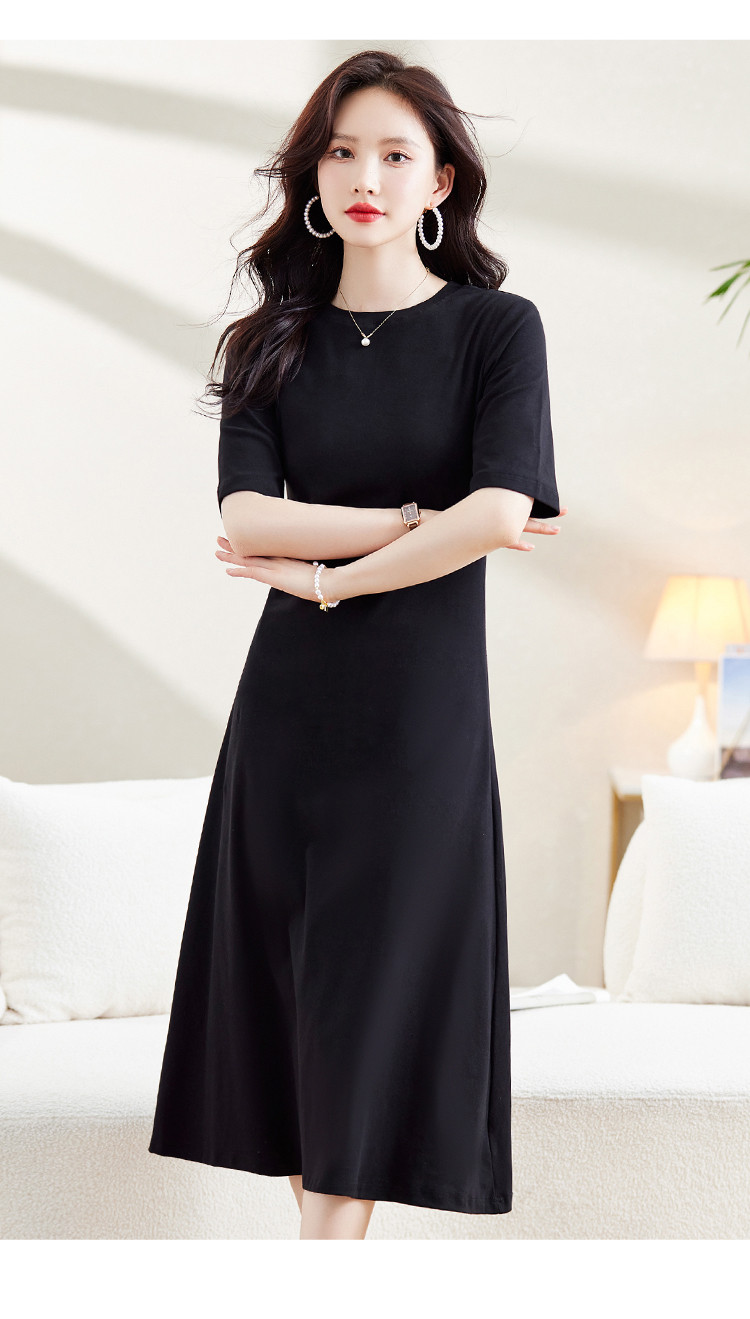 商品名称:气质小黑裙夏季收腰小个子中袖裙子赫本风轻奢纯色连衣裙 860824