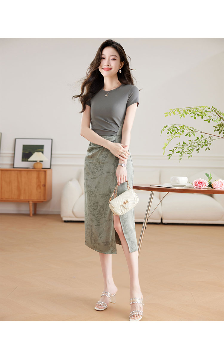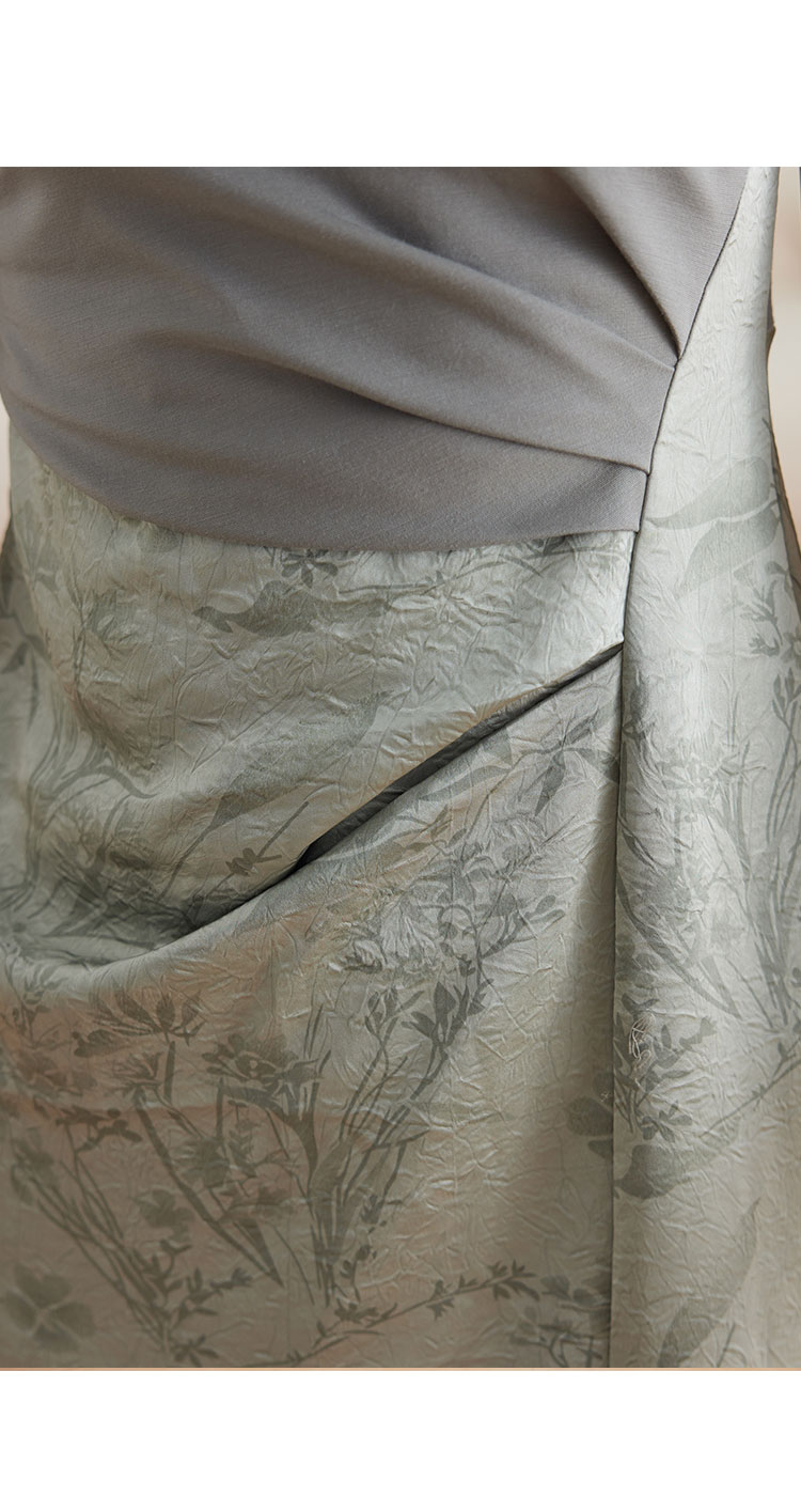 商品名称:【中式新美学】缎面拼接开叉连衣裙女短袖夏季国风提花气质a字裙 556063