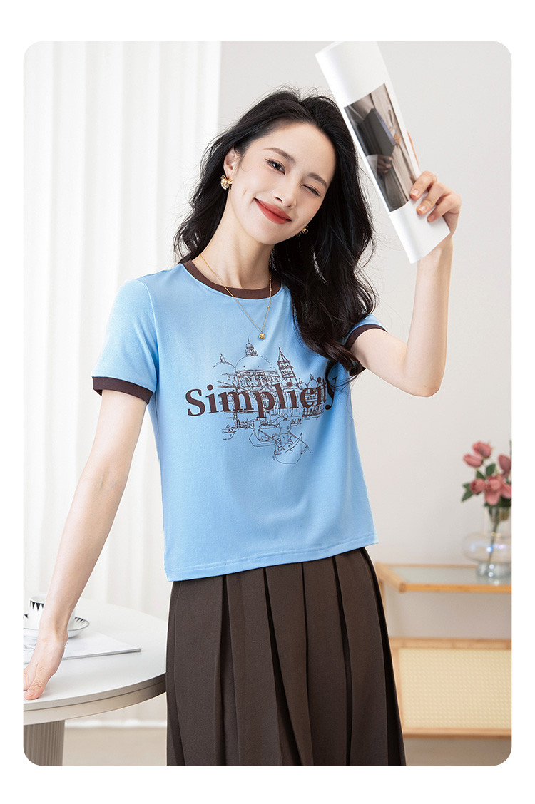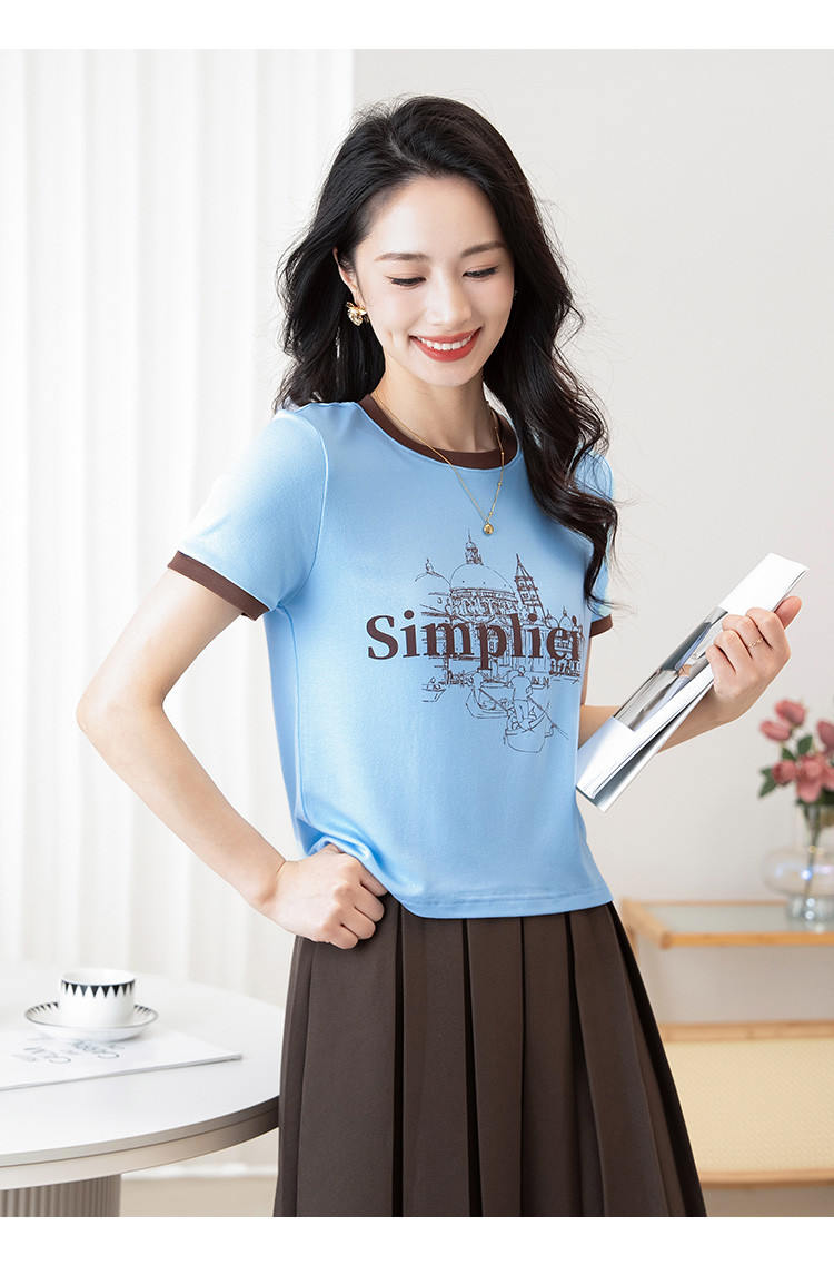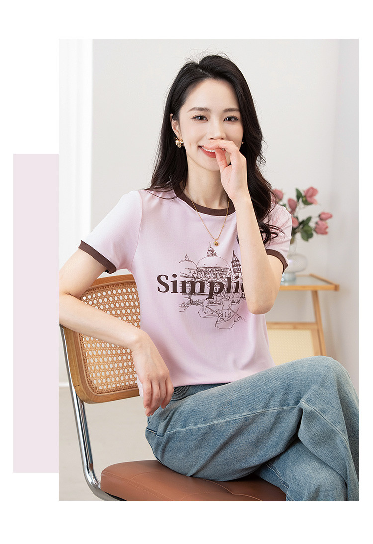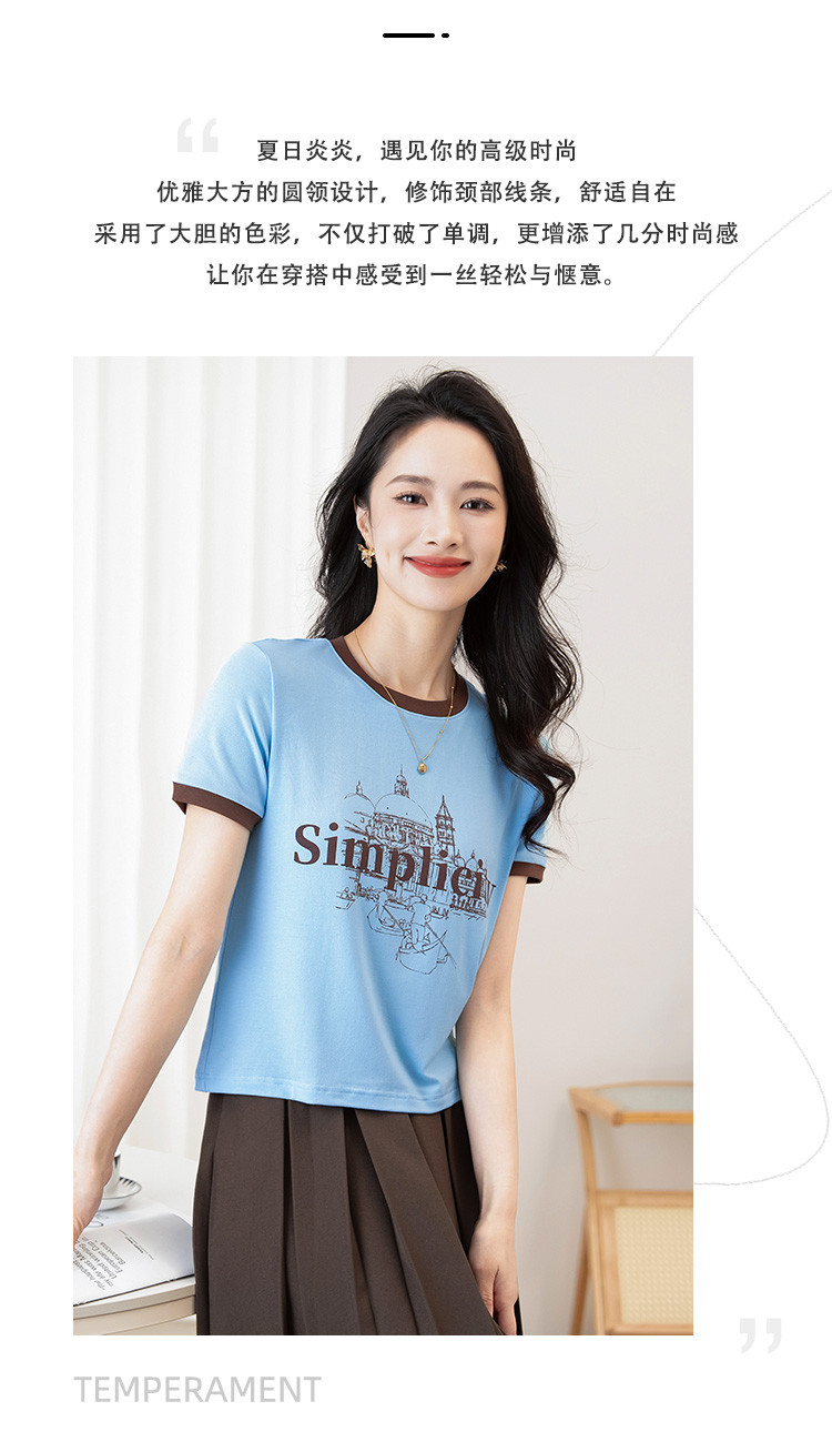 高级感拼色圆领T恤女夏季宽松百搭短袖小众上衣 963480