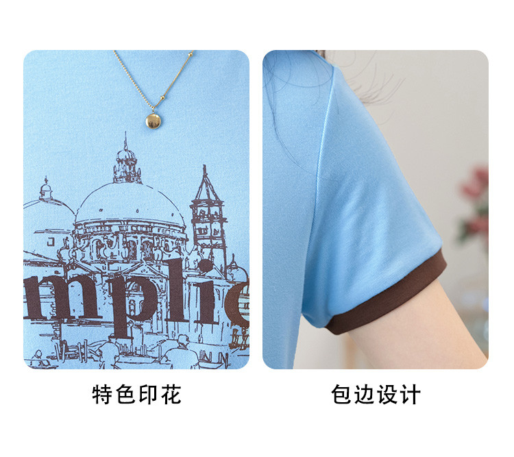商品名称:高级感拼色圆领T恤女夏季宽松百搭短袖小众上衣 963480