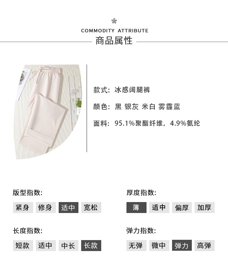 商品名称:【女装】夏季女式休闲运动长裤宽松薄款透气垂感显瘦阔腿裤女 878611