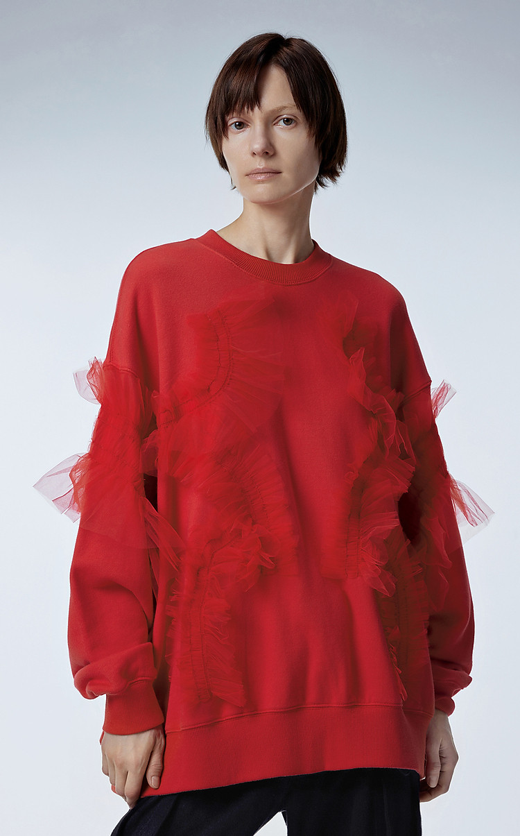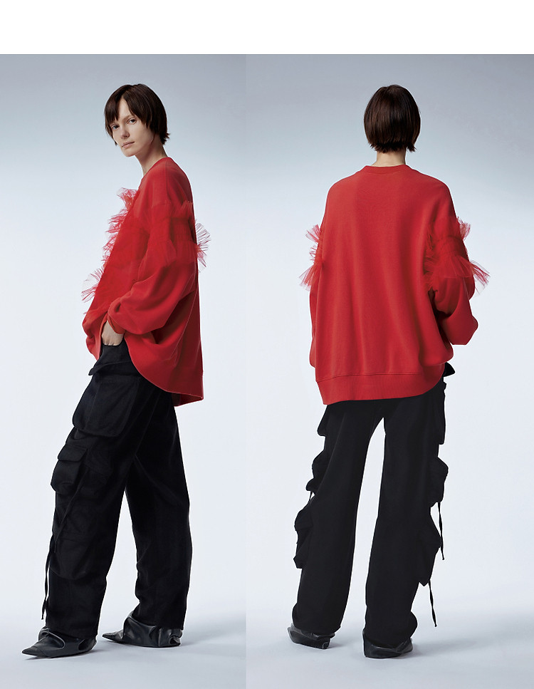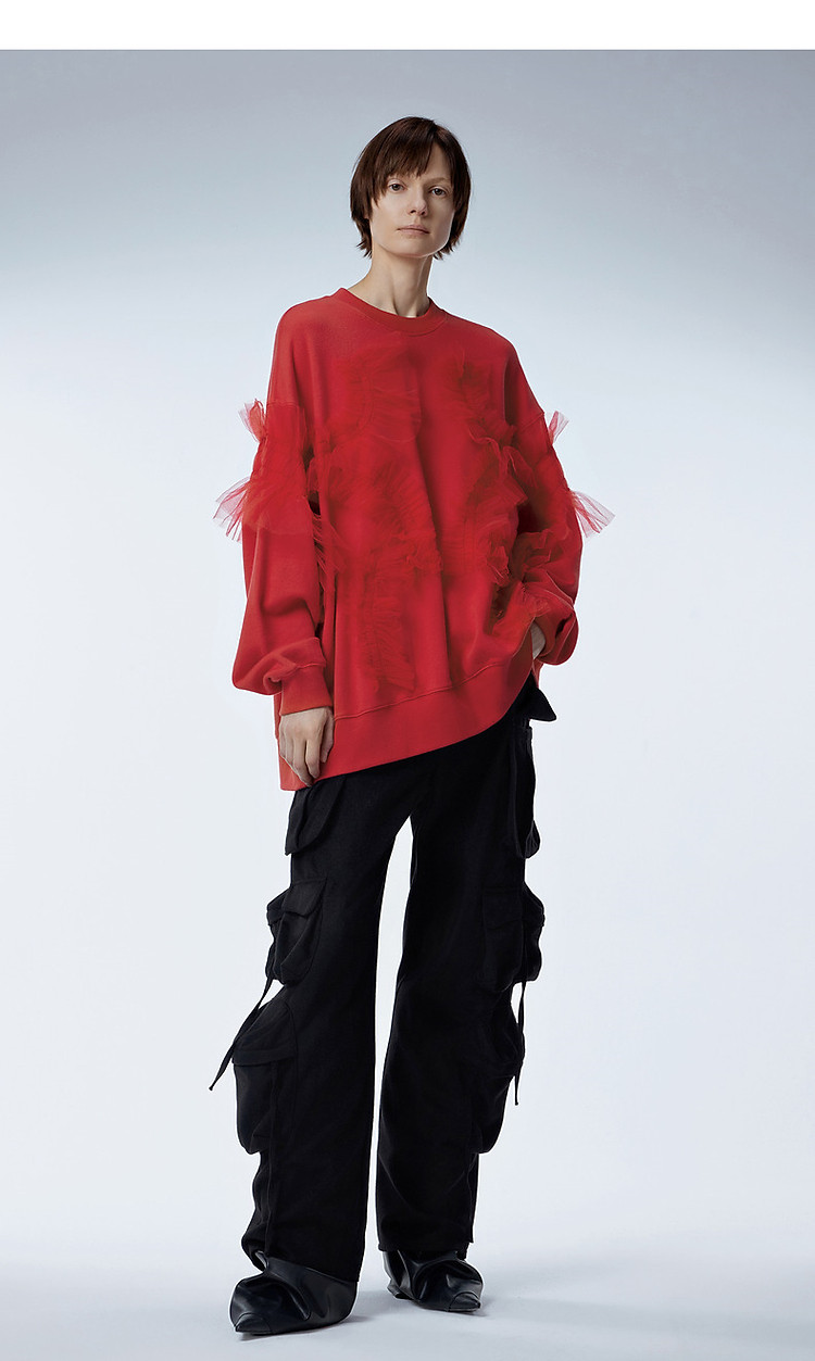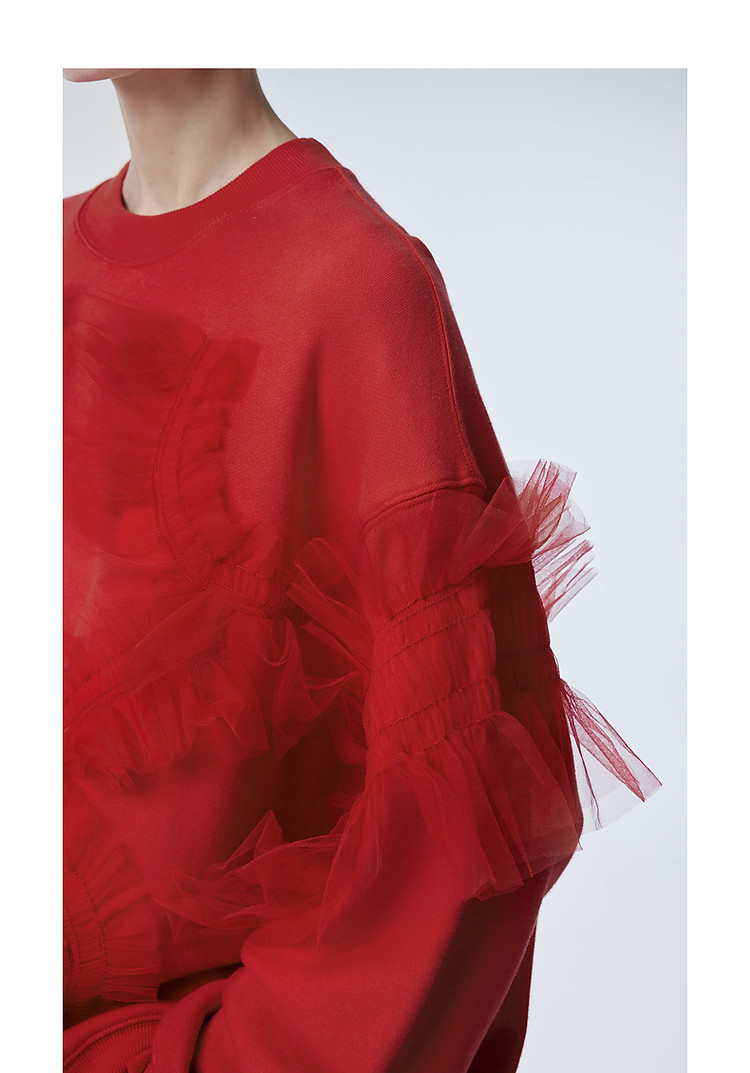 商品名称:冬卫衣网纱宽松圆领上衣女 418059