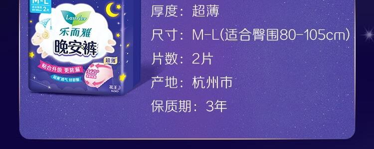 商品名称:日本 花王(Kao)乐而雅晚安裤 裤型卫生巾 2片(M-L码)