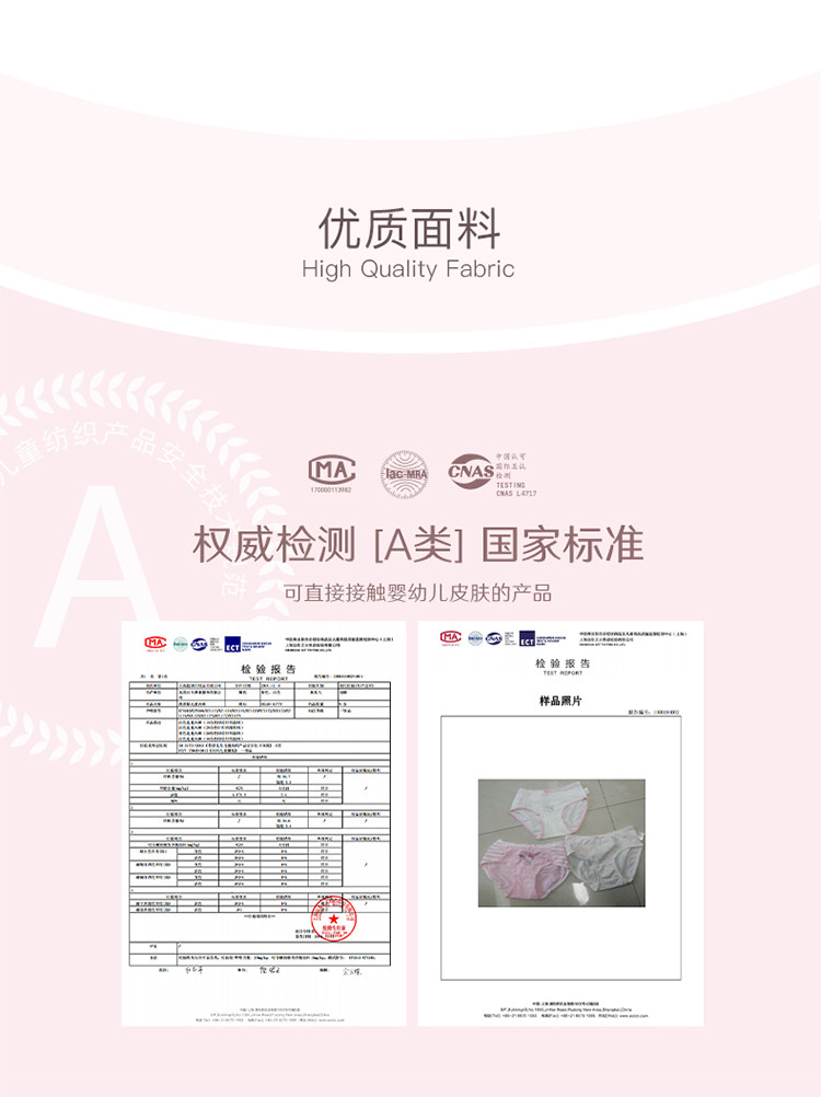 商品名称:女童内裤棉儿童短裤宝宝三角裤头女孩中大童抗菌透气薄款底裤a类 418305