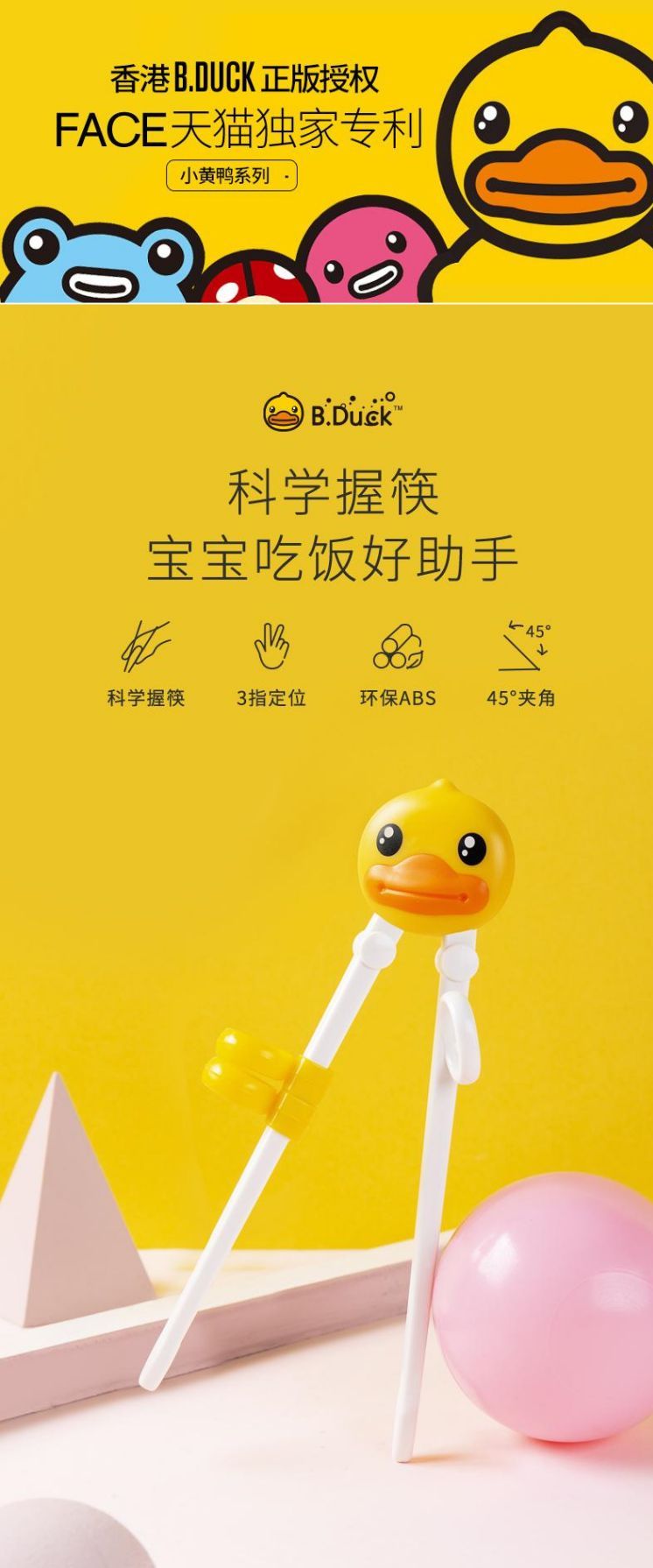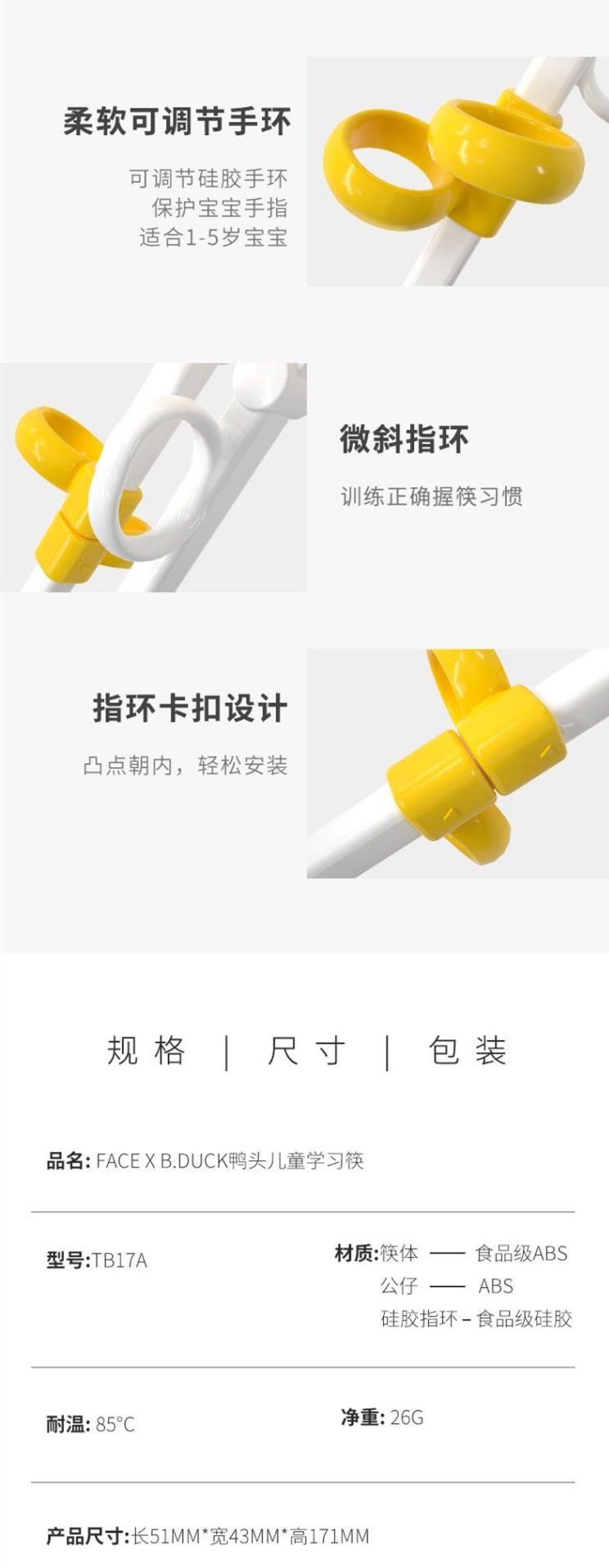 商品名称:FACE×B.Duck 小黄鸭鸭头学习筷【黄色】(1双)