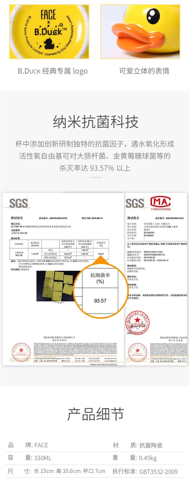 商品名称:FACE×B.Duck 鸭嘴陶瓷杯【小黄鸭】(330ml)
