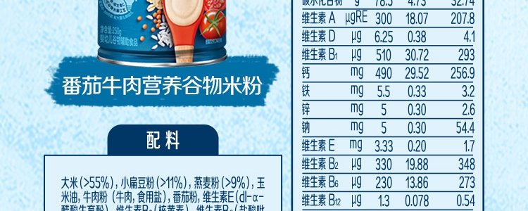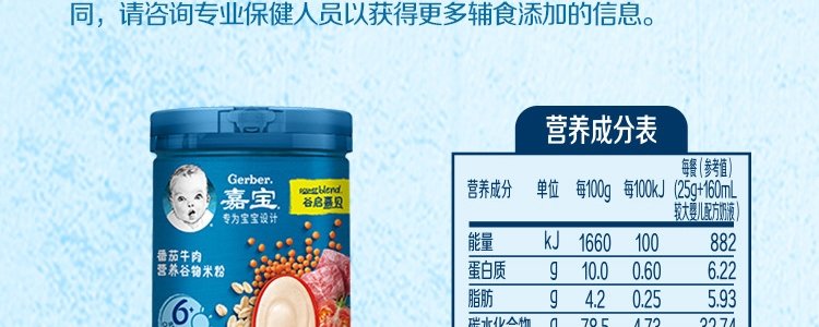 商品名称:嘉宝(Gerber)3段 番茄牛肉谷物米粉 250g
