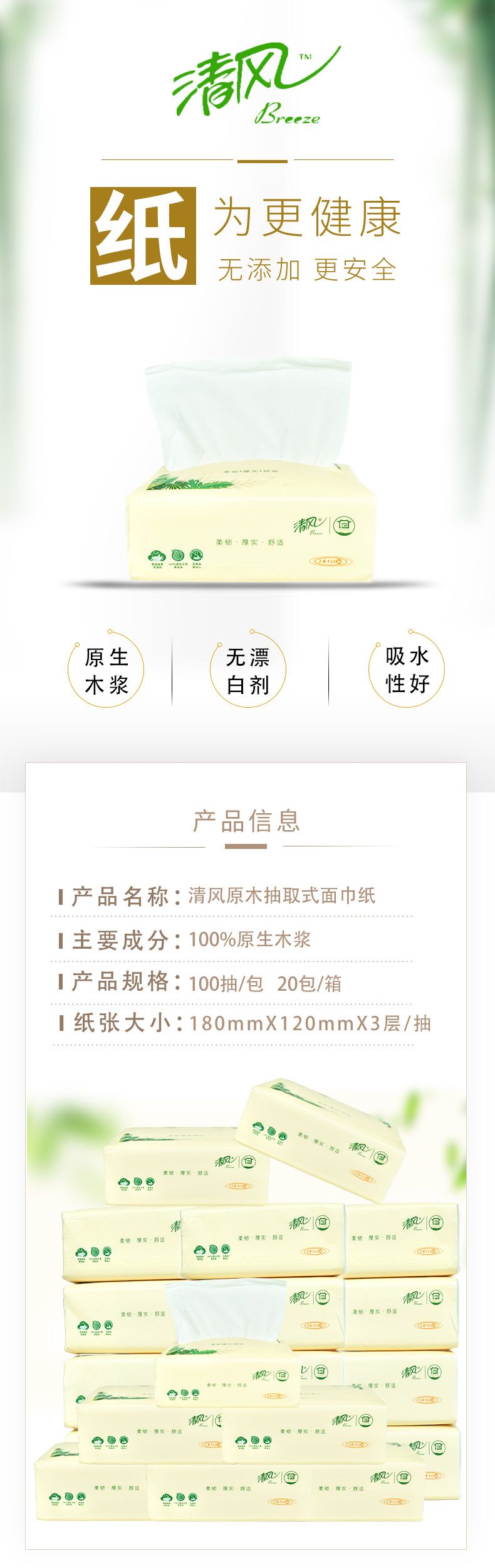 商品名称:清风 原木抽取式面巾纸抽纸3层100抽1包(20包)