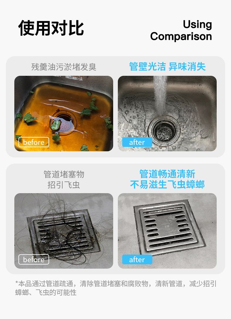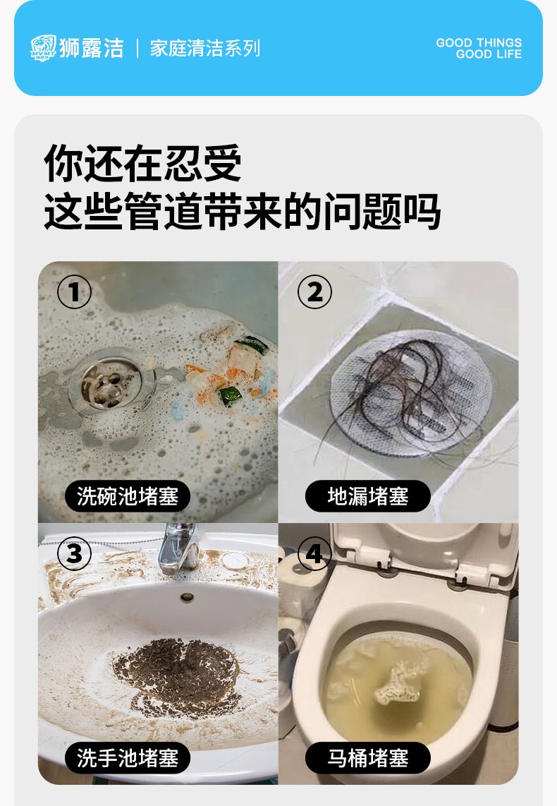 商品名称:【3瓶】狮露洁管道疏通剂强力溶解厨房油污通下水道粉厕所除味地漏堵塞