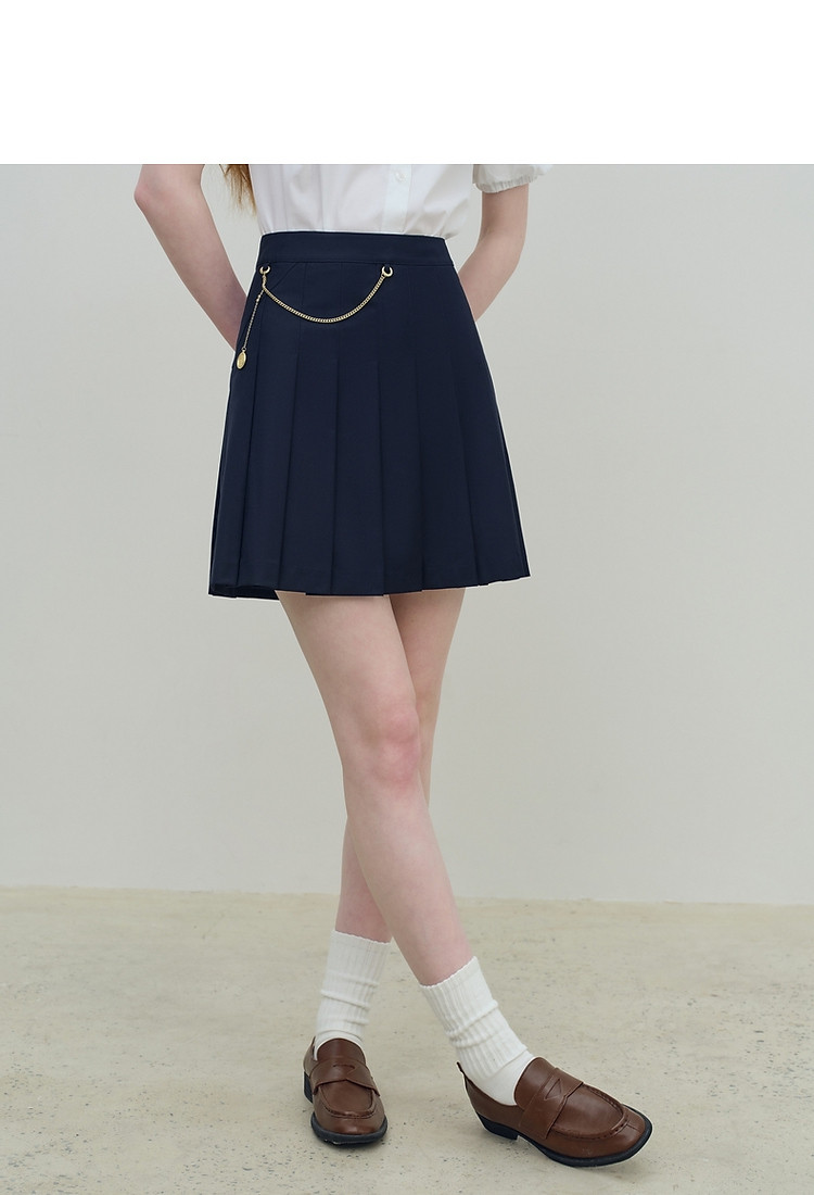 商品名称:半身裙女夏季学院风高腰显瘦百褶A字短裙女 889345
