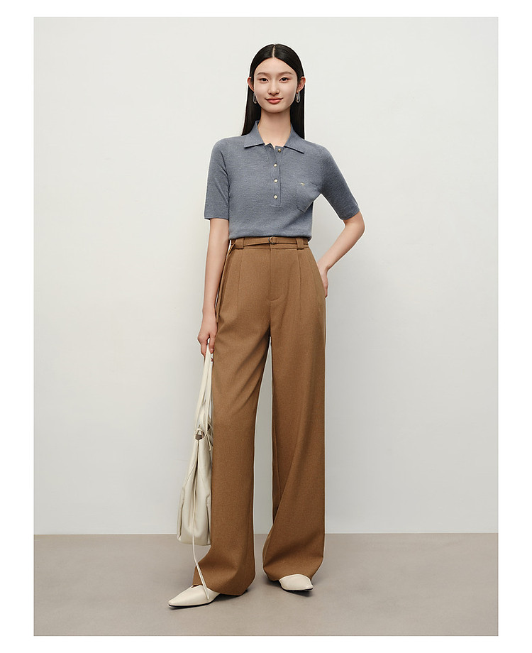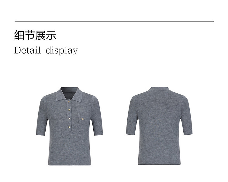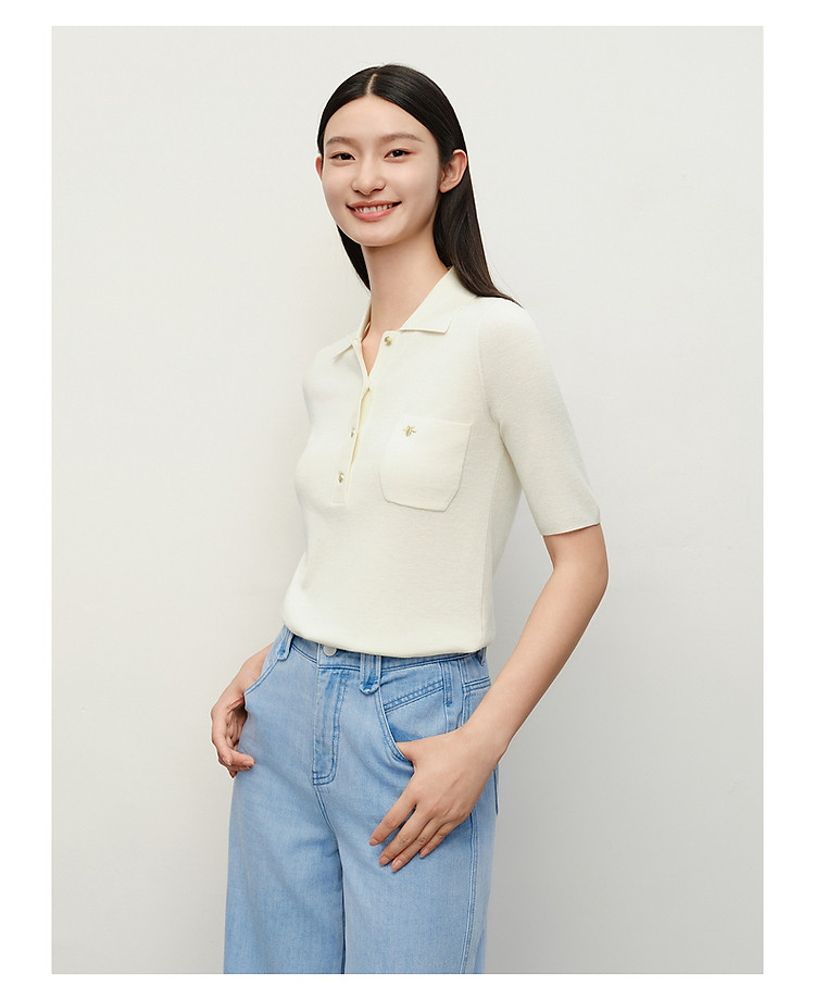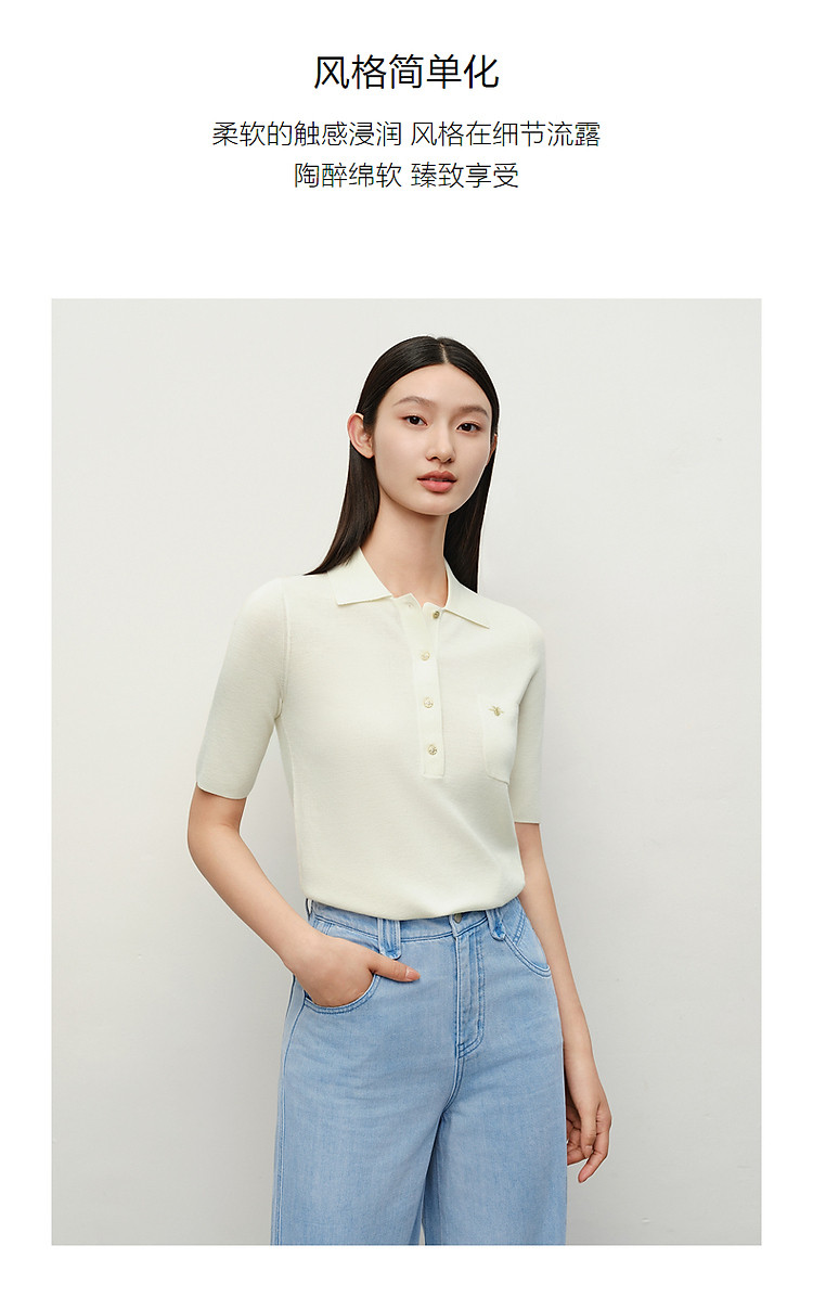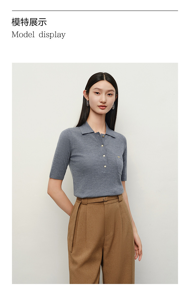 商品名称:旗下安娜蔻系列100%绵羊毛高级感老钱翻领短袖针织衫女秋季 027276