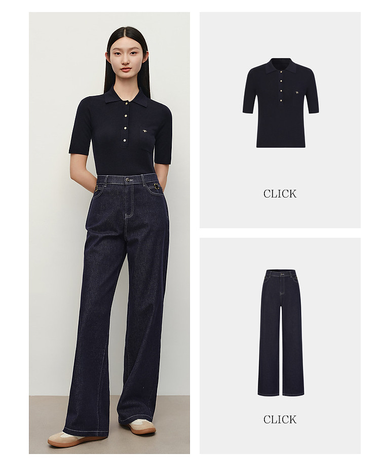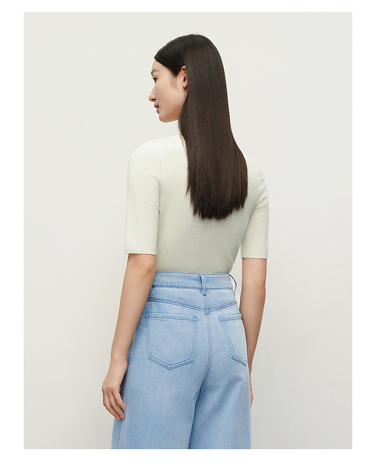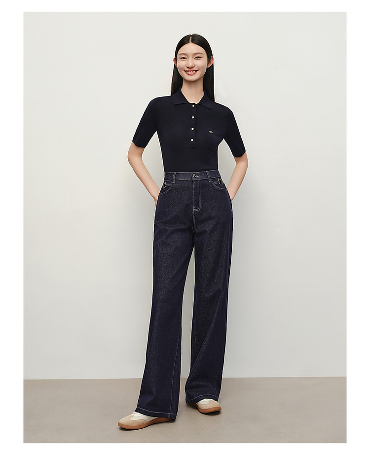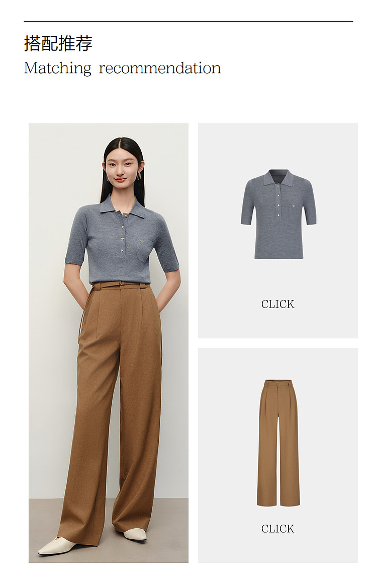 商品名称:旗下安娜蔻系列100%绵羊毛高级感老钱翻领短袖针织衫女秋季 027276