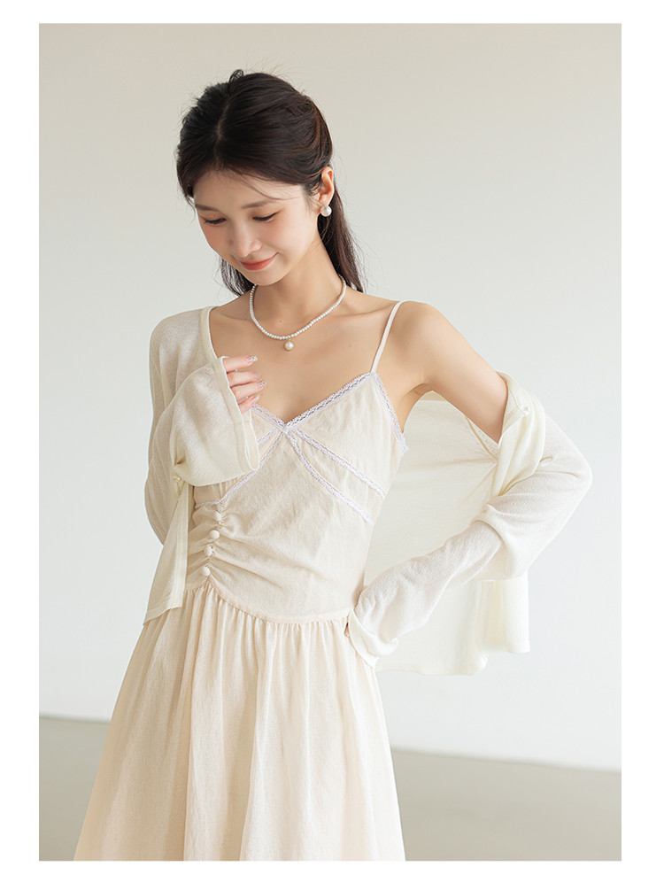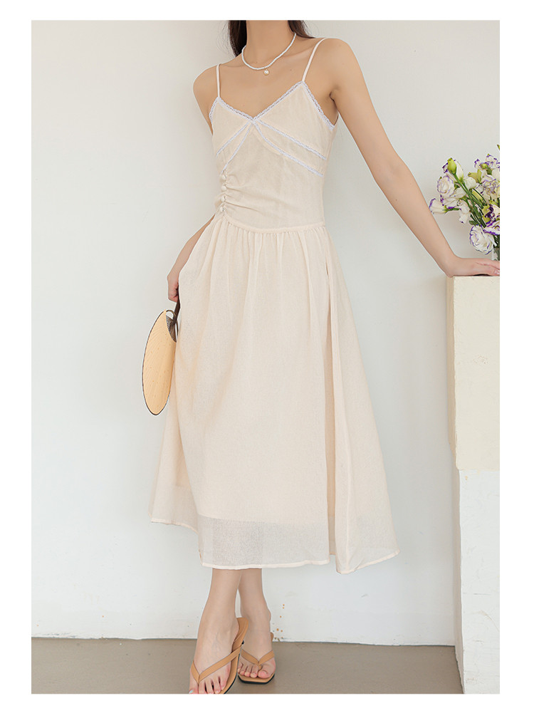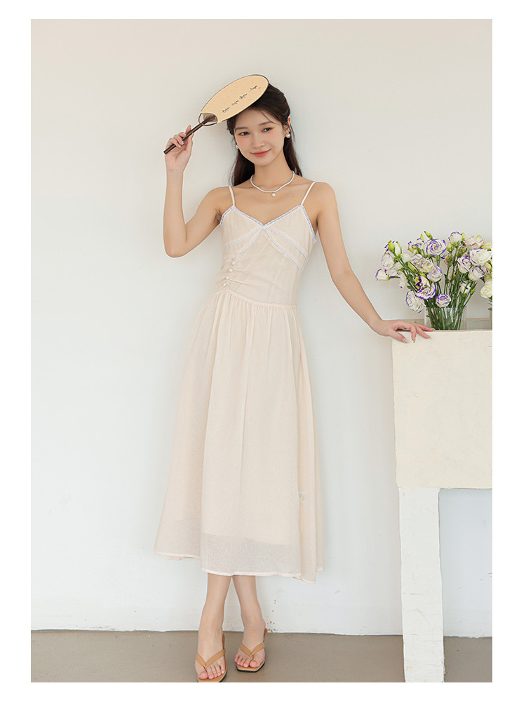 商品名称:法式高级感吊带领气质裙子温柔显瘦收腰拼接吊带裙女 805763