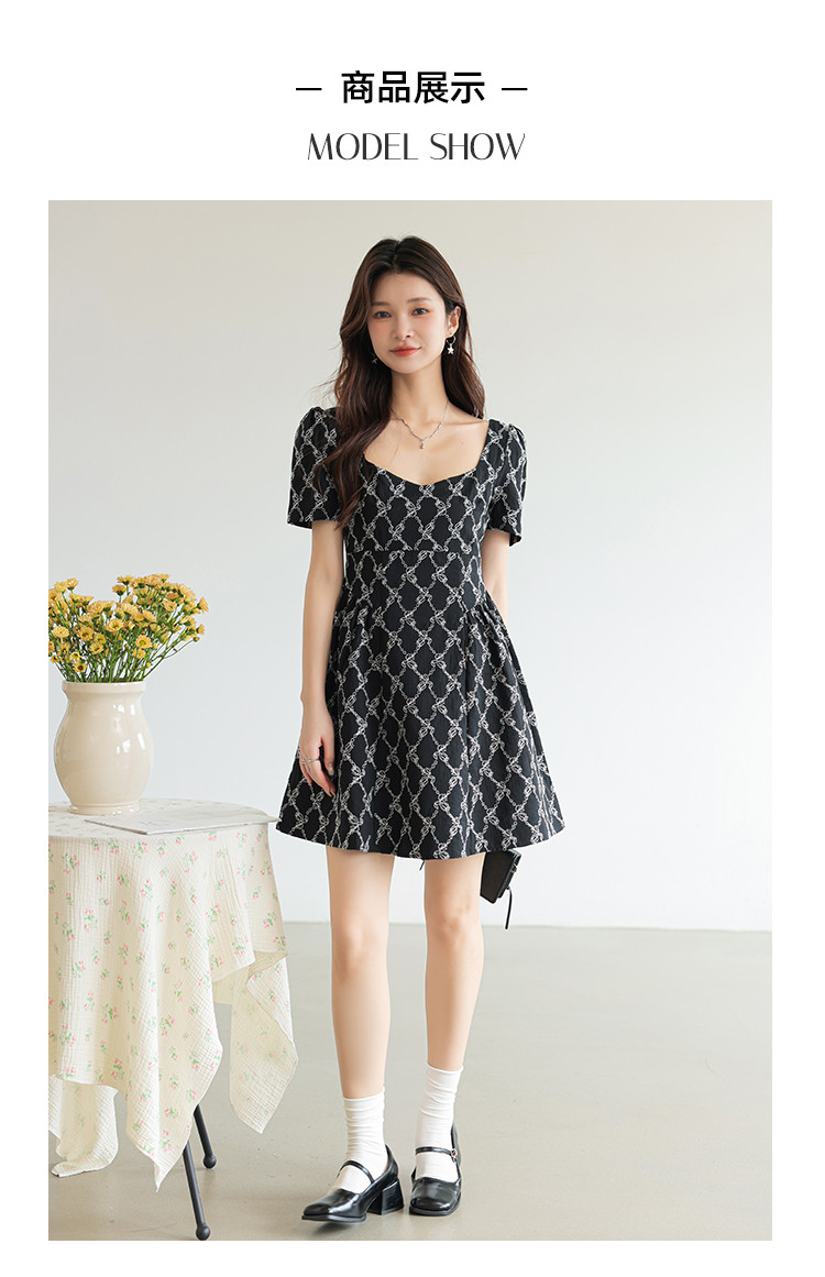 商品名称:法式复古方领短袖连衣裙女气质温柔收腰气质短裙女 904067