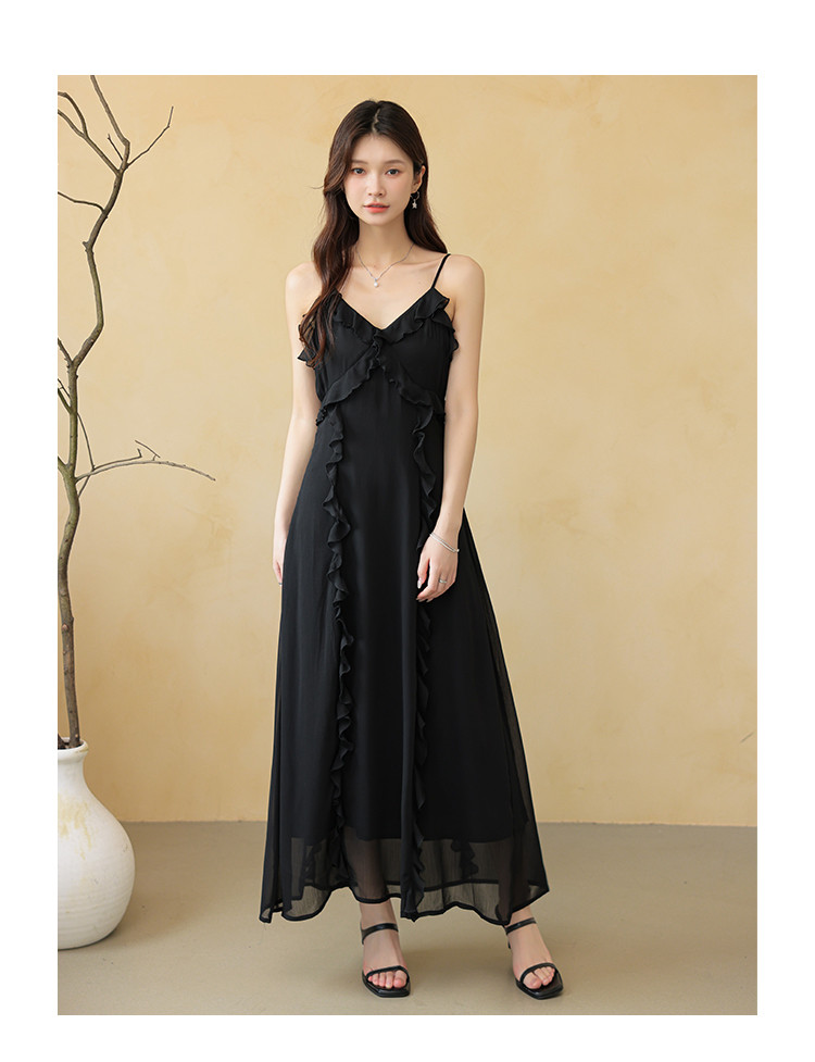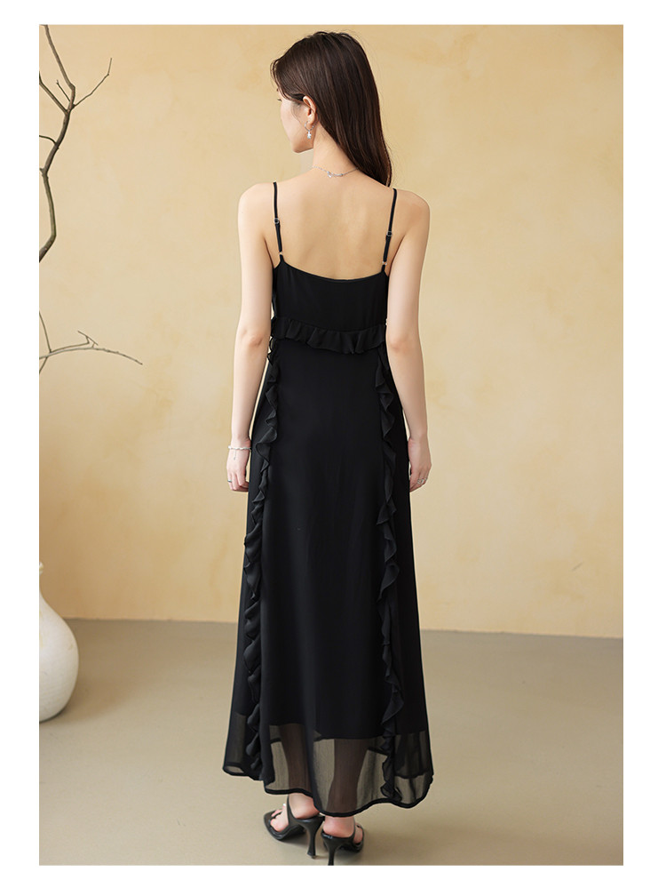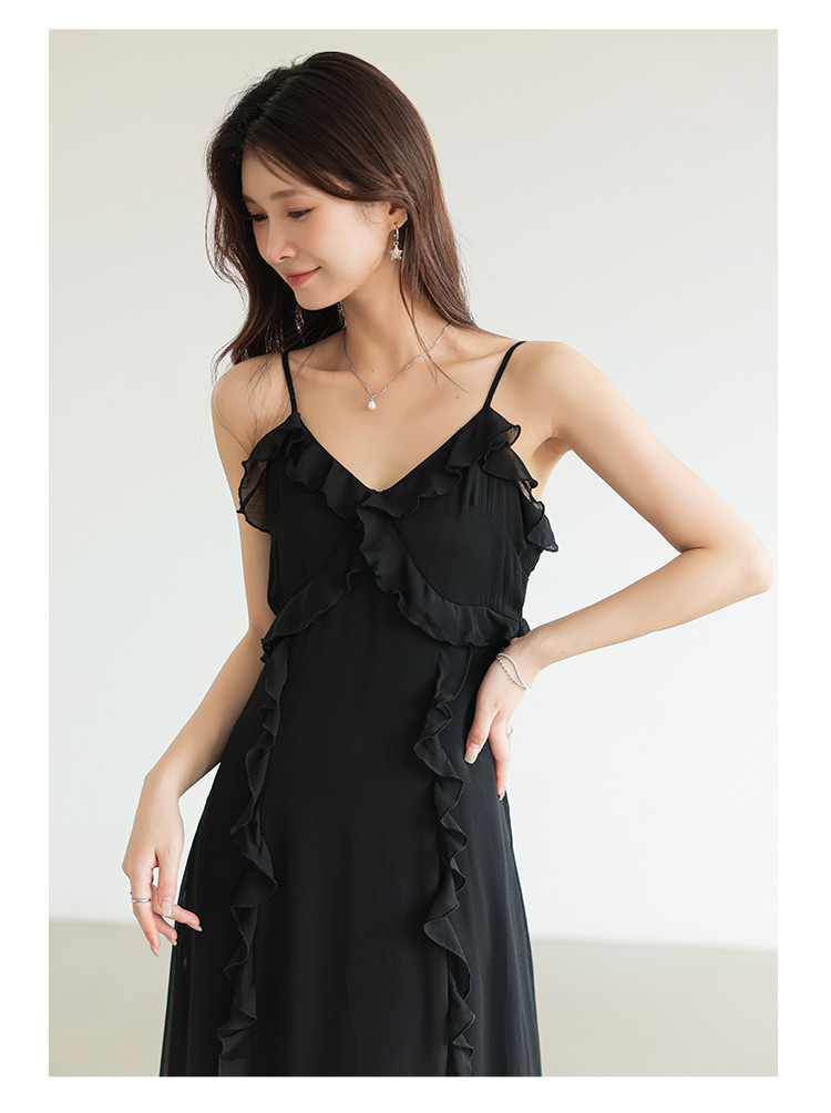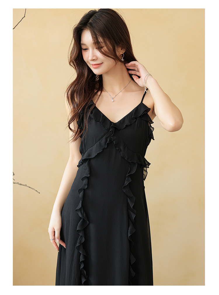 法式荷叶边吊带裙子温柔气质显瘦长裙女 838531