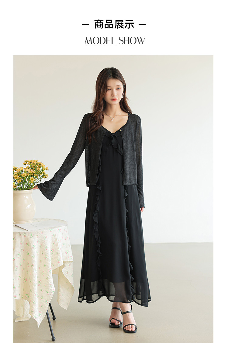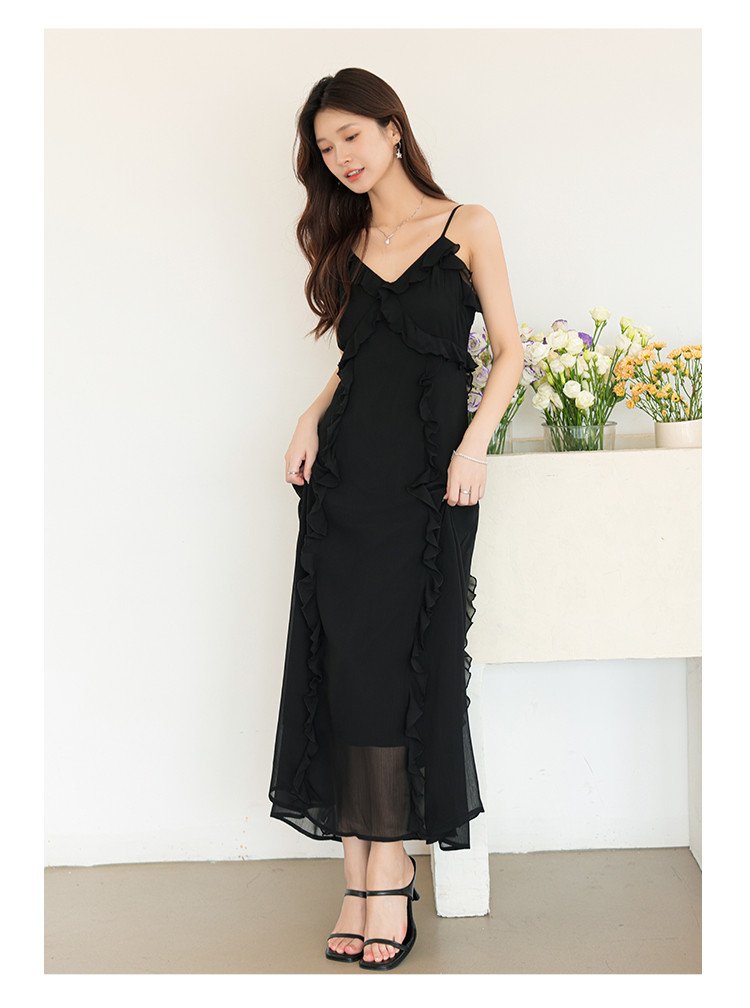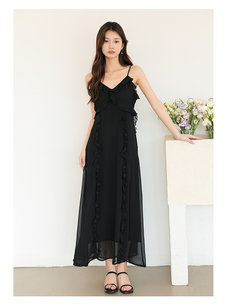 商品名称:法式荷叶边吊带裙子温柔气质显瘦长裙女 838531