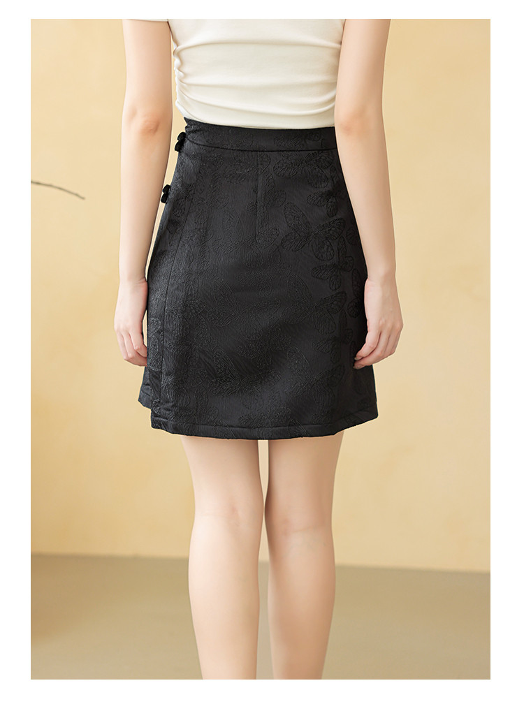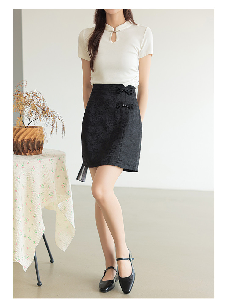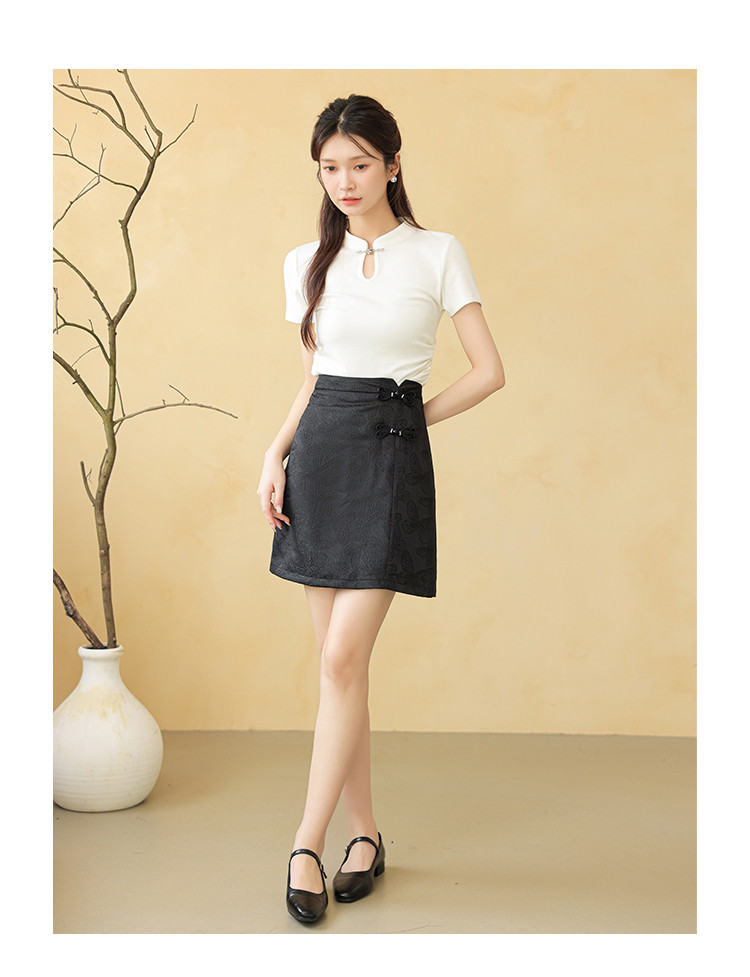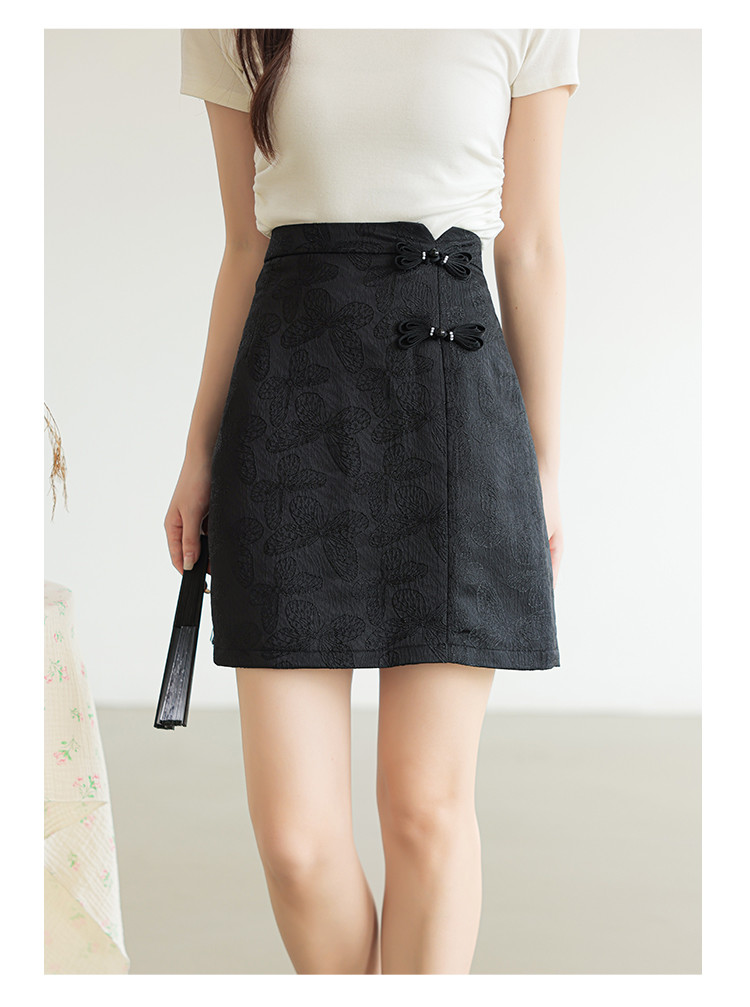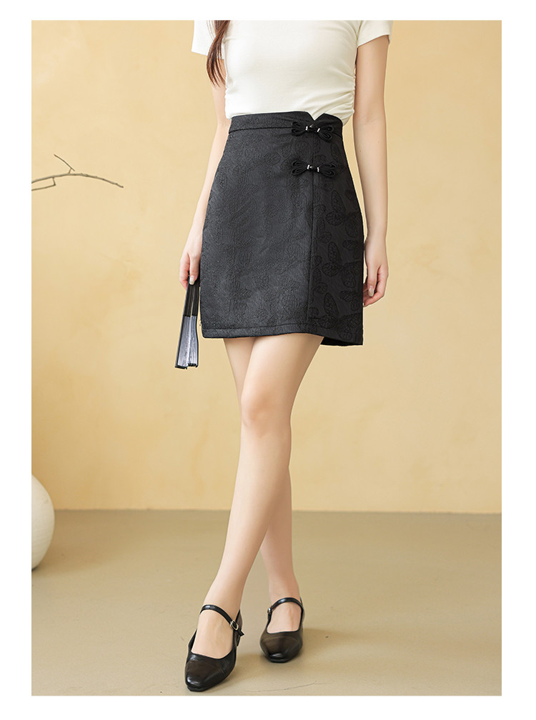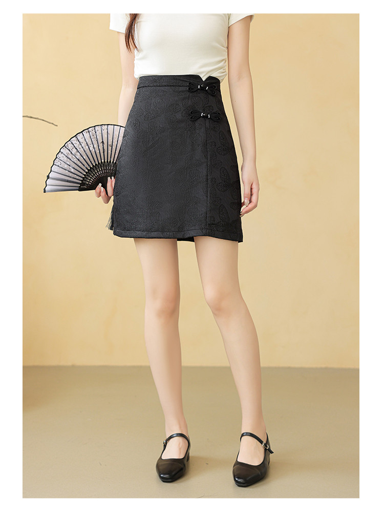 商品名称:新中式高腰a字直身半截裙女温柔盘扣拉链半身裙 723843