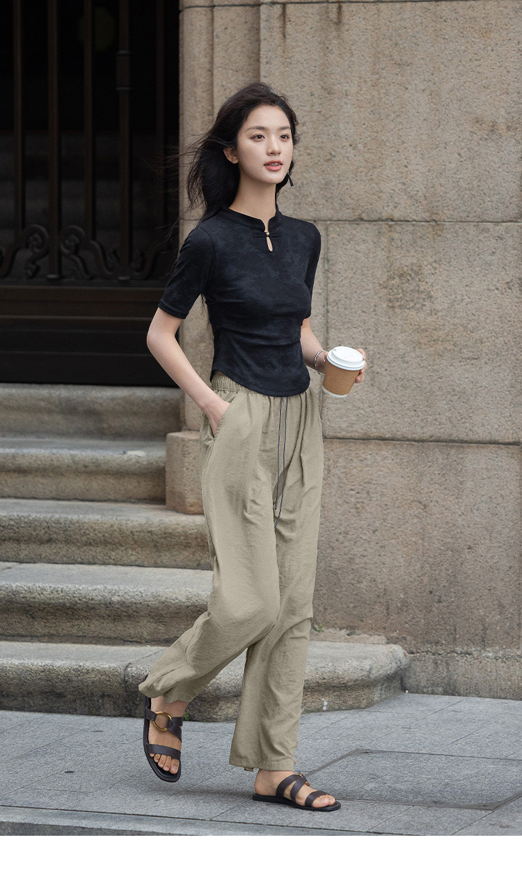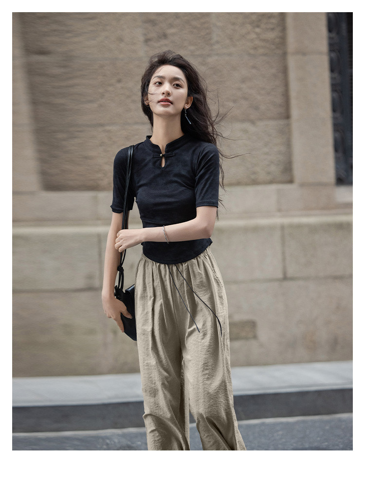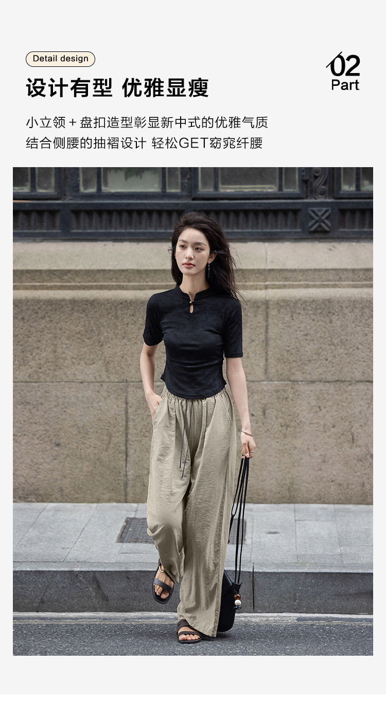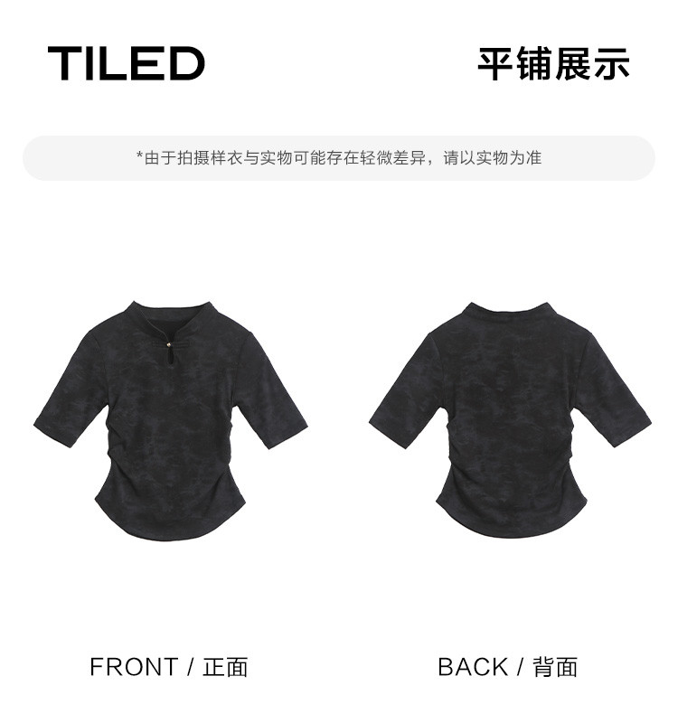 商品名称:【新中式立领短袖】夏层次晕染盘扣装饰中袖T恤女 204738