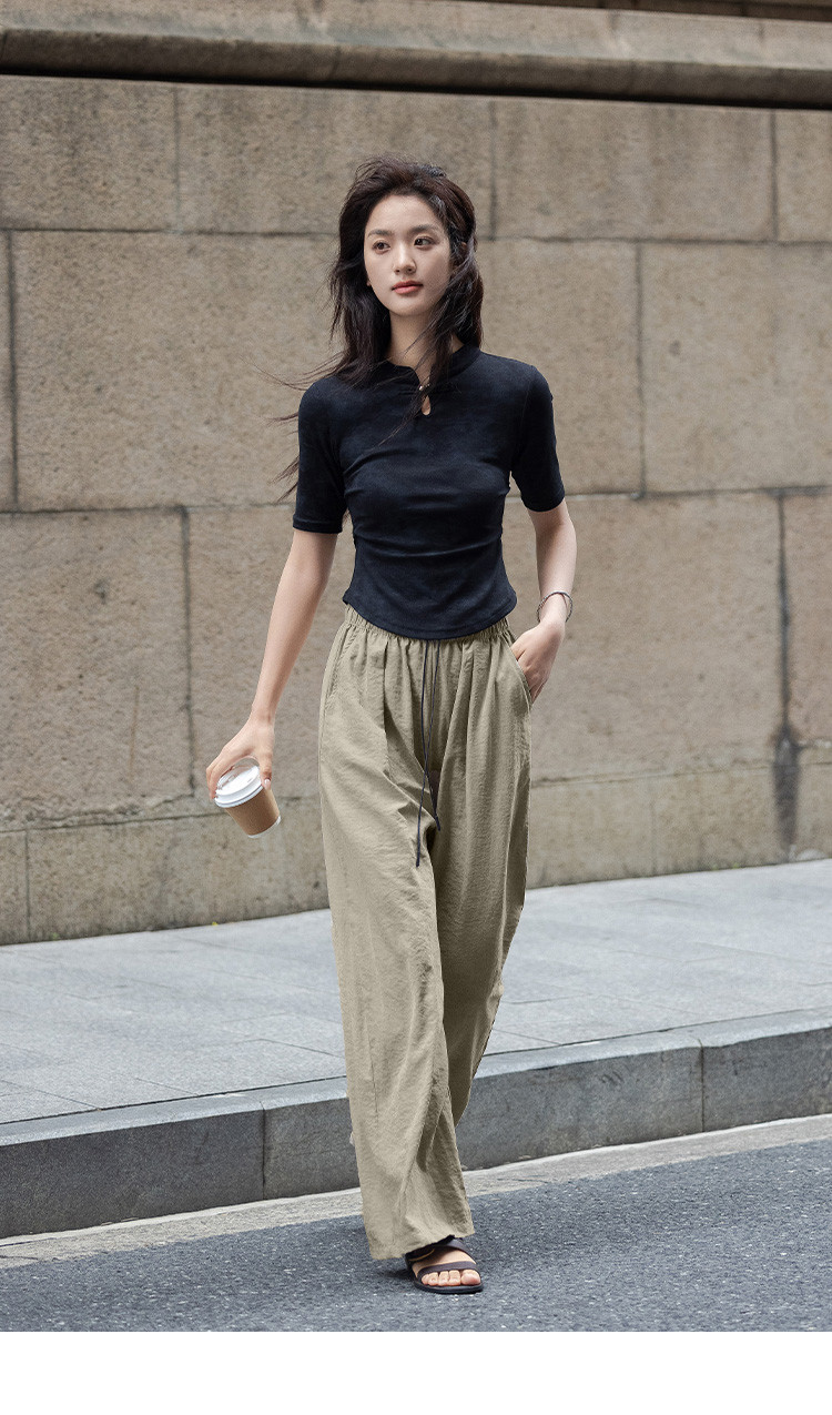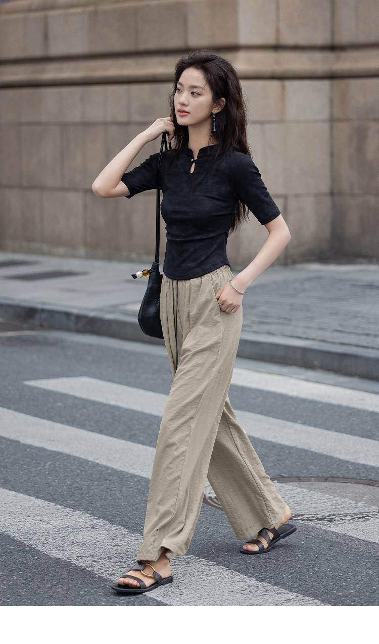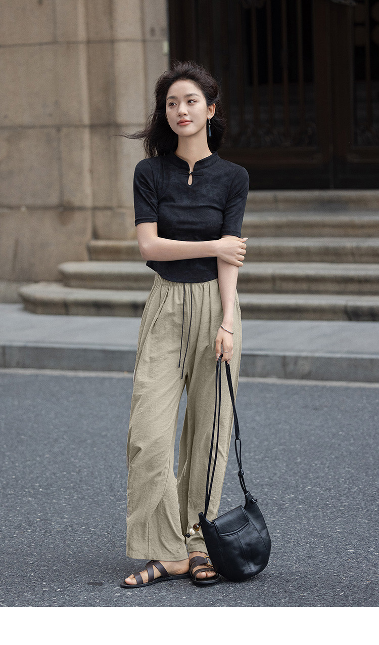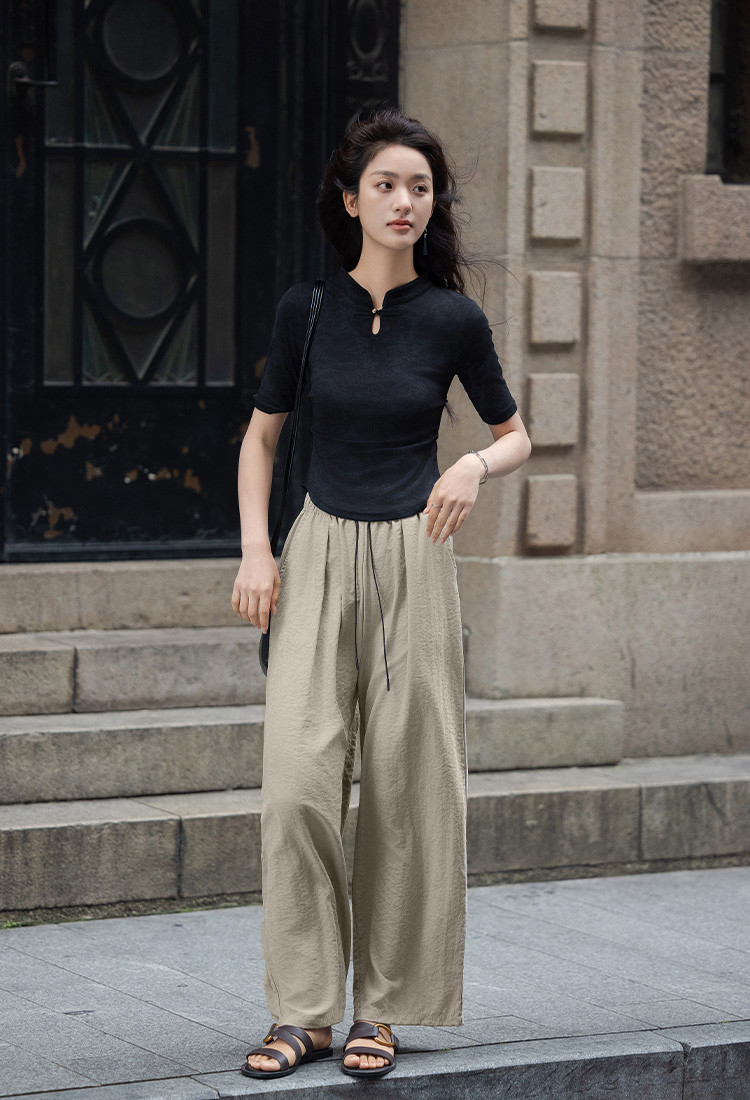 商品名称:【新中式立领短袖】夏层次晕染盘扣装饰中袖T恤女 204738
