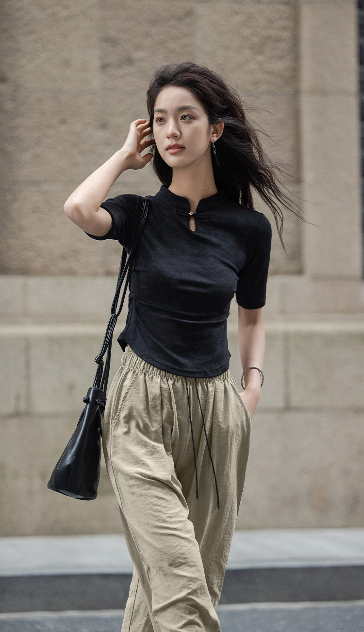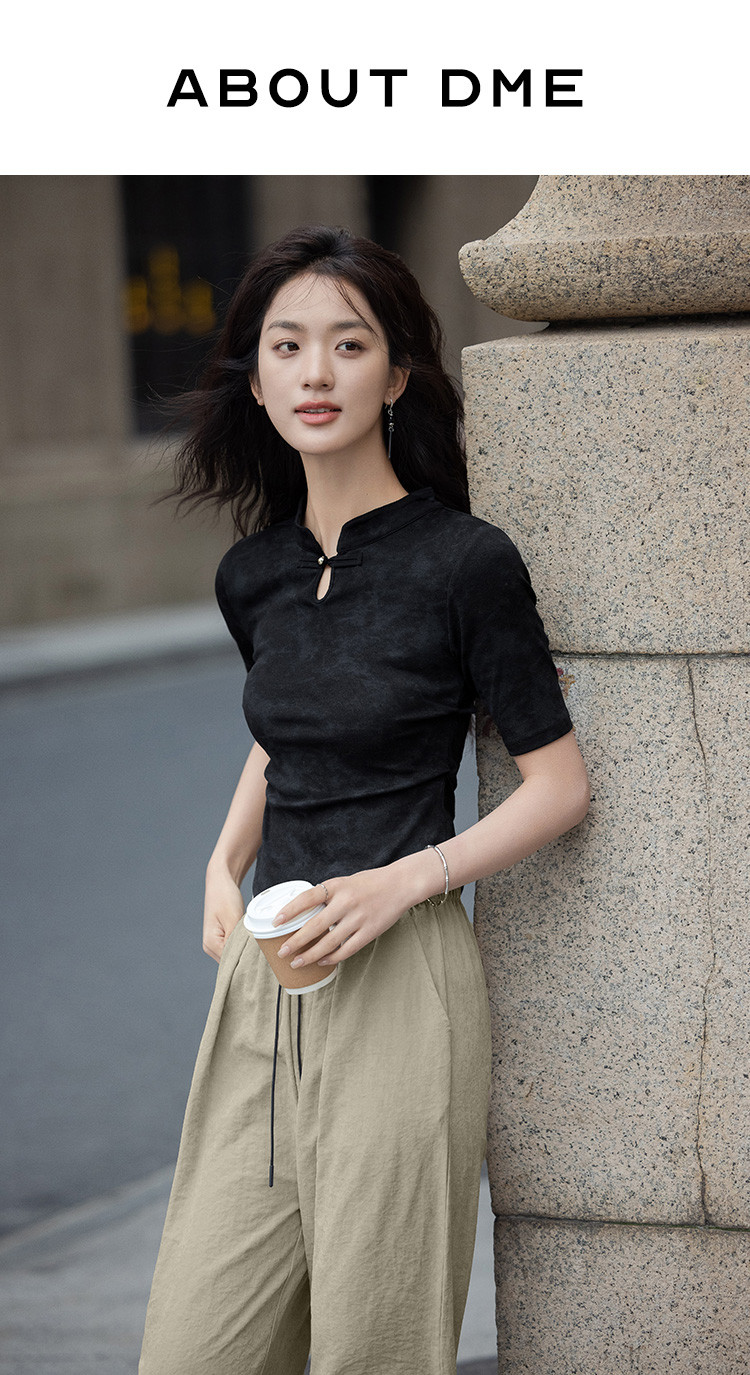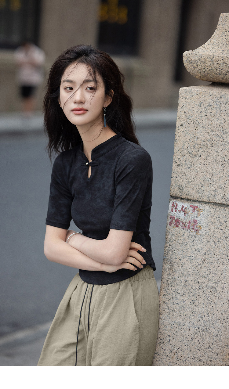 【新中式立领短袖】夏层次晕染盘扣装饰中袖T恤女 204738