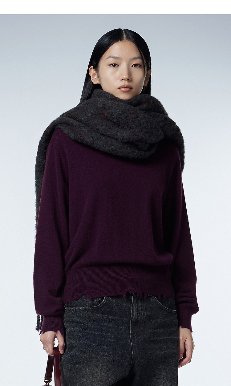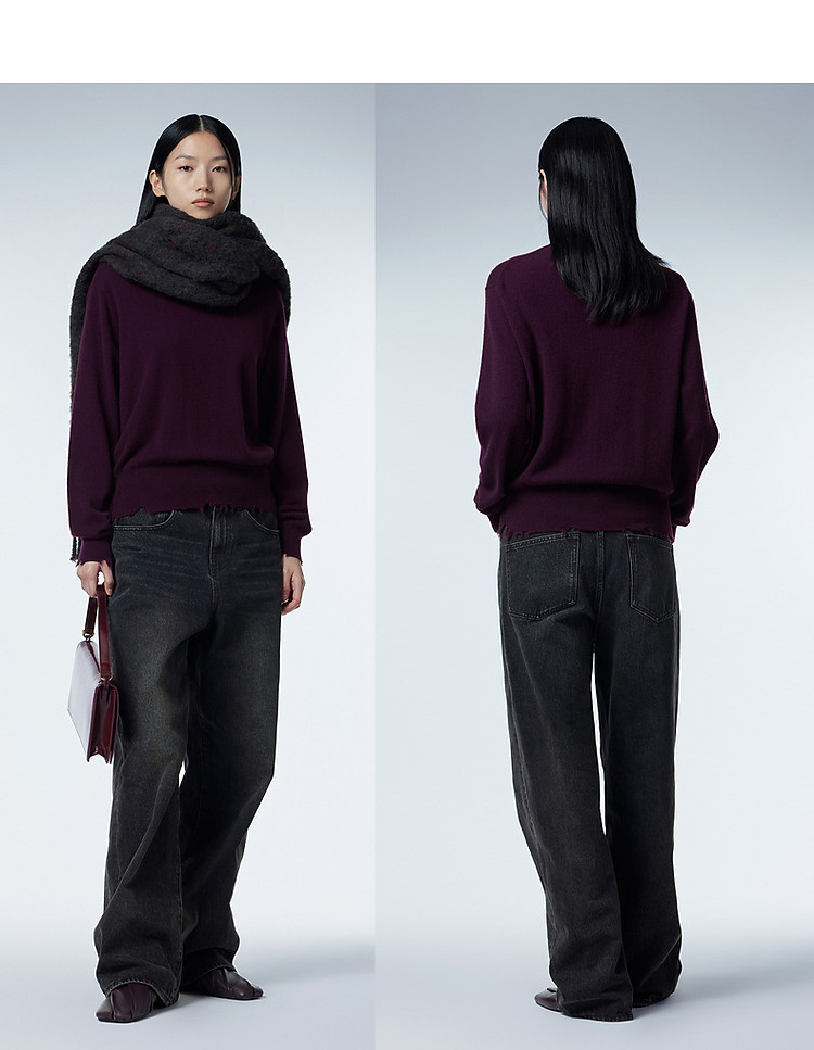 【含山羊绒】春装V领百搭羊毛衫女纯色休闲宽松针织衫 401171