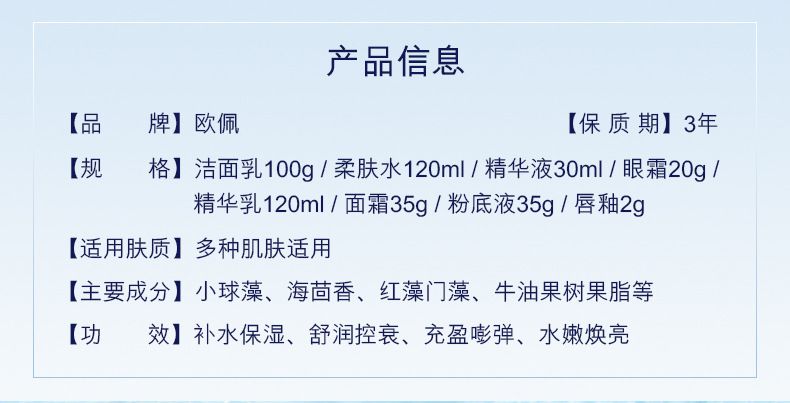 商品名称:欧佩海生素水嫩滋盈八件套补水滋润保湿补水焕颜面部