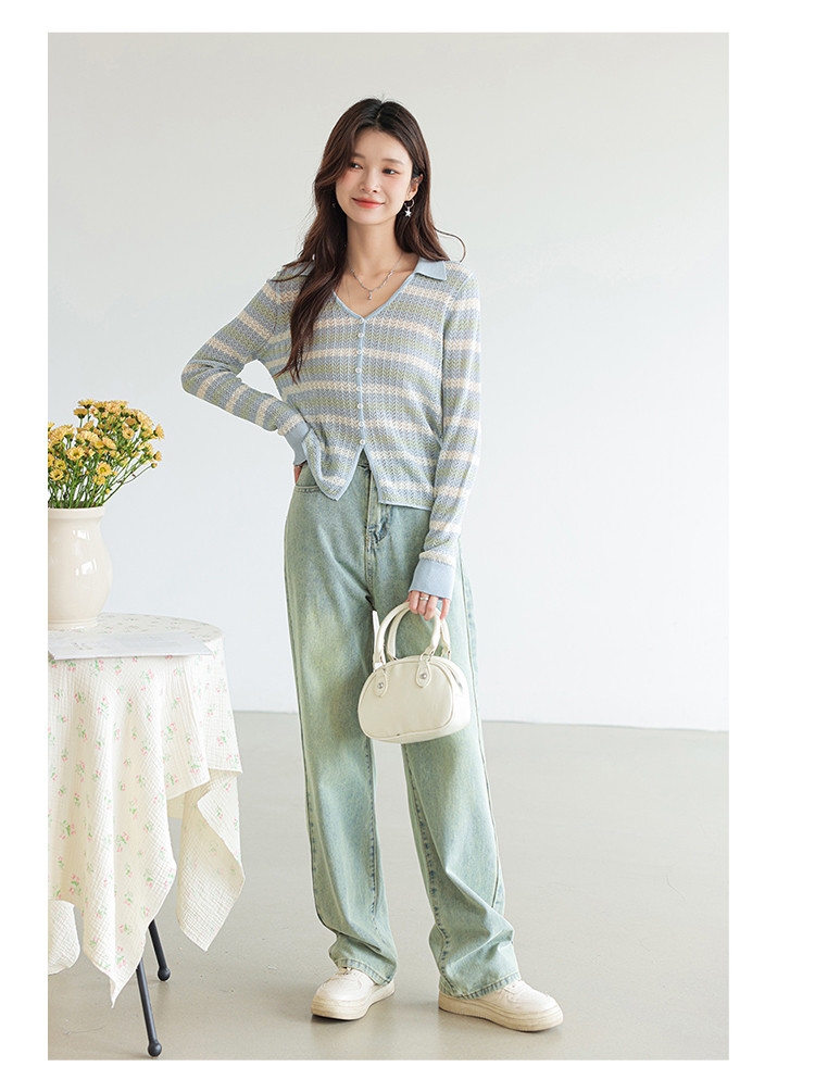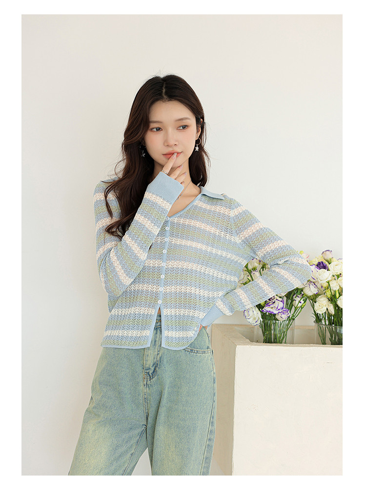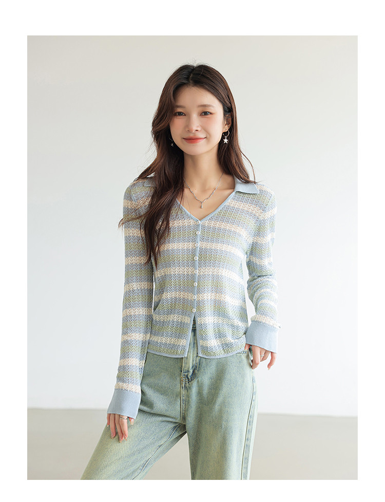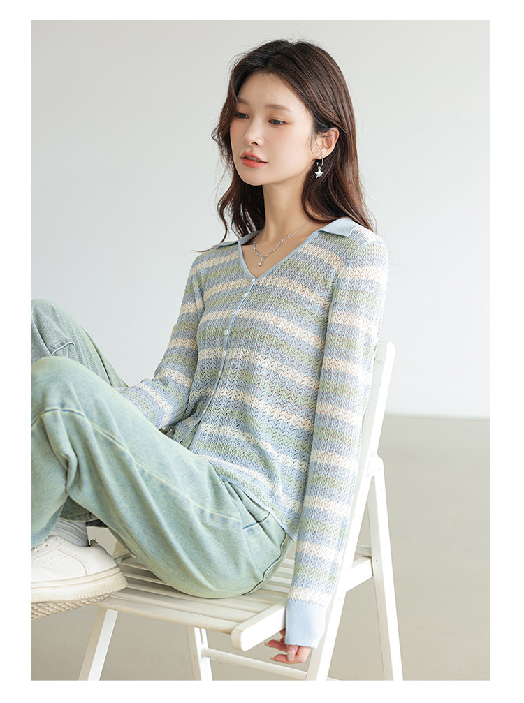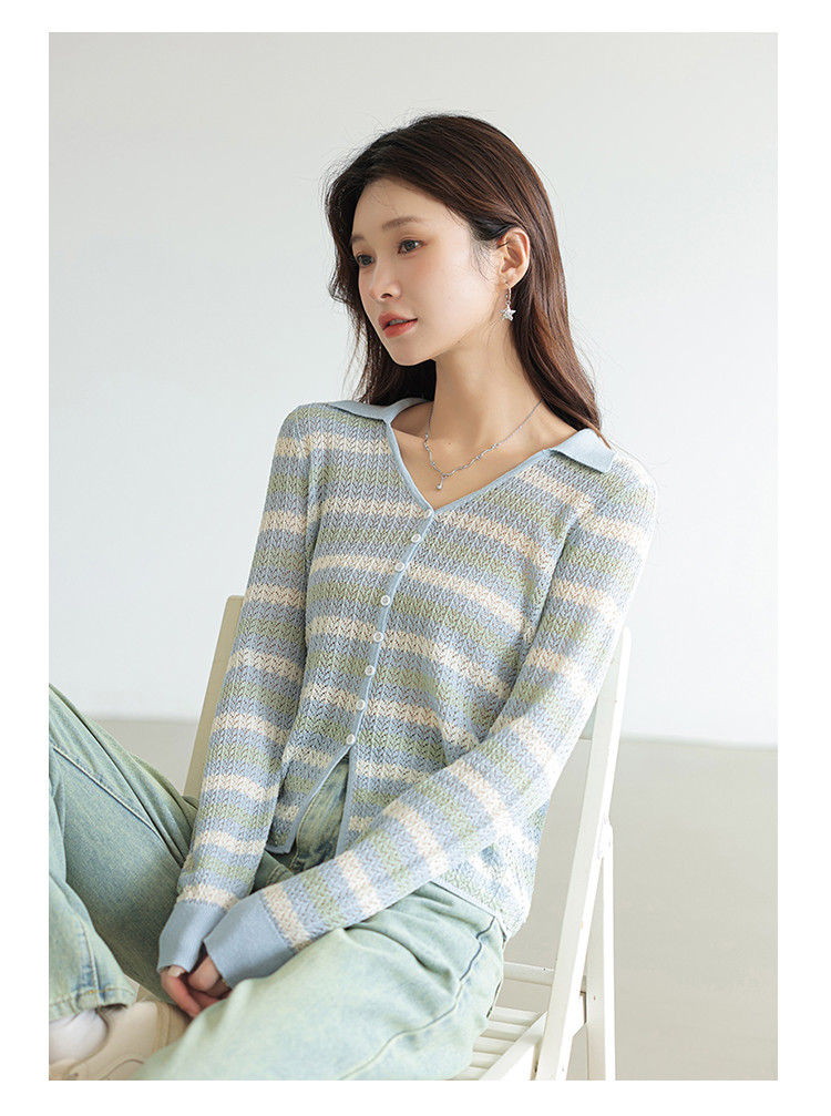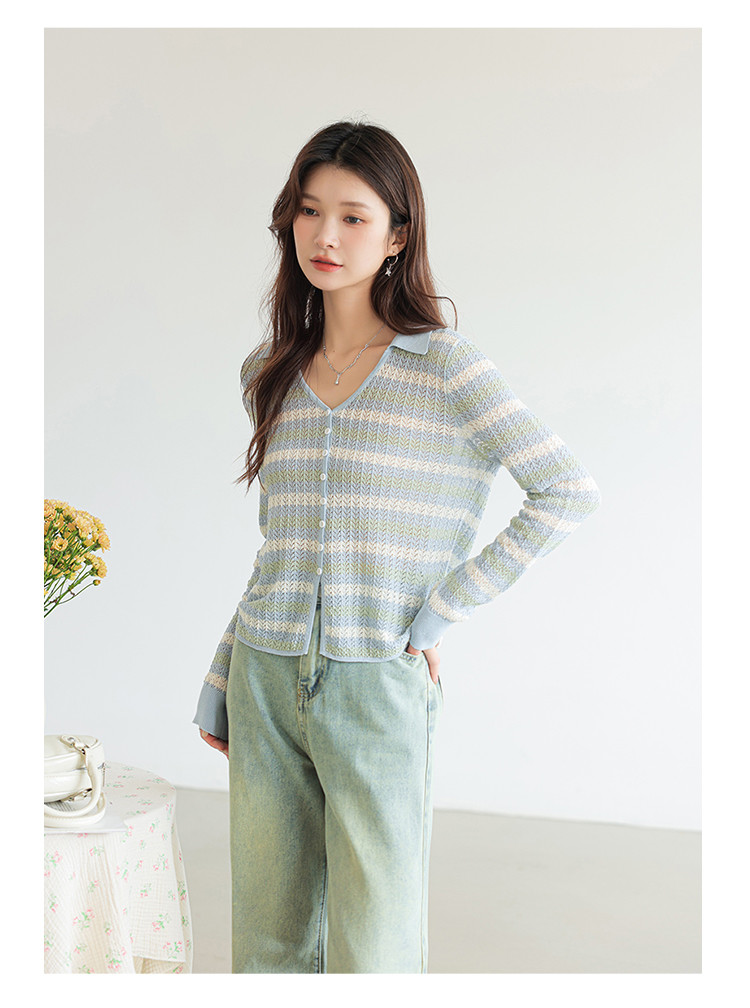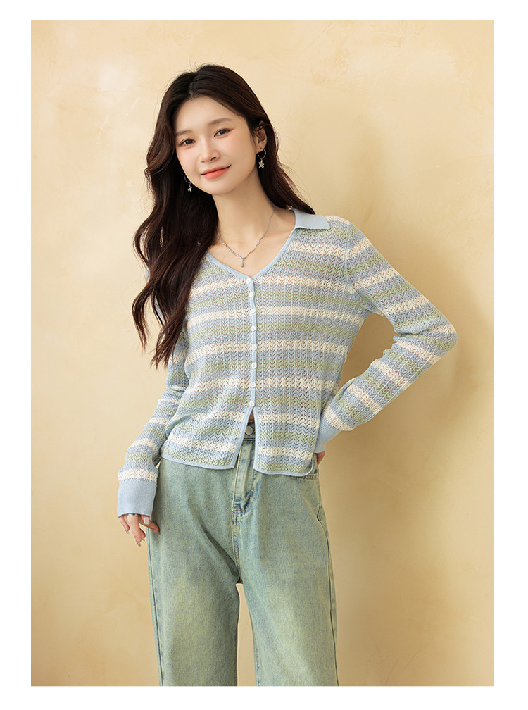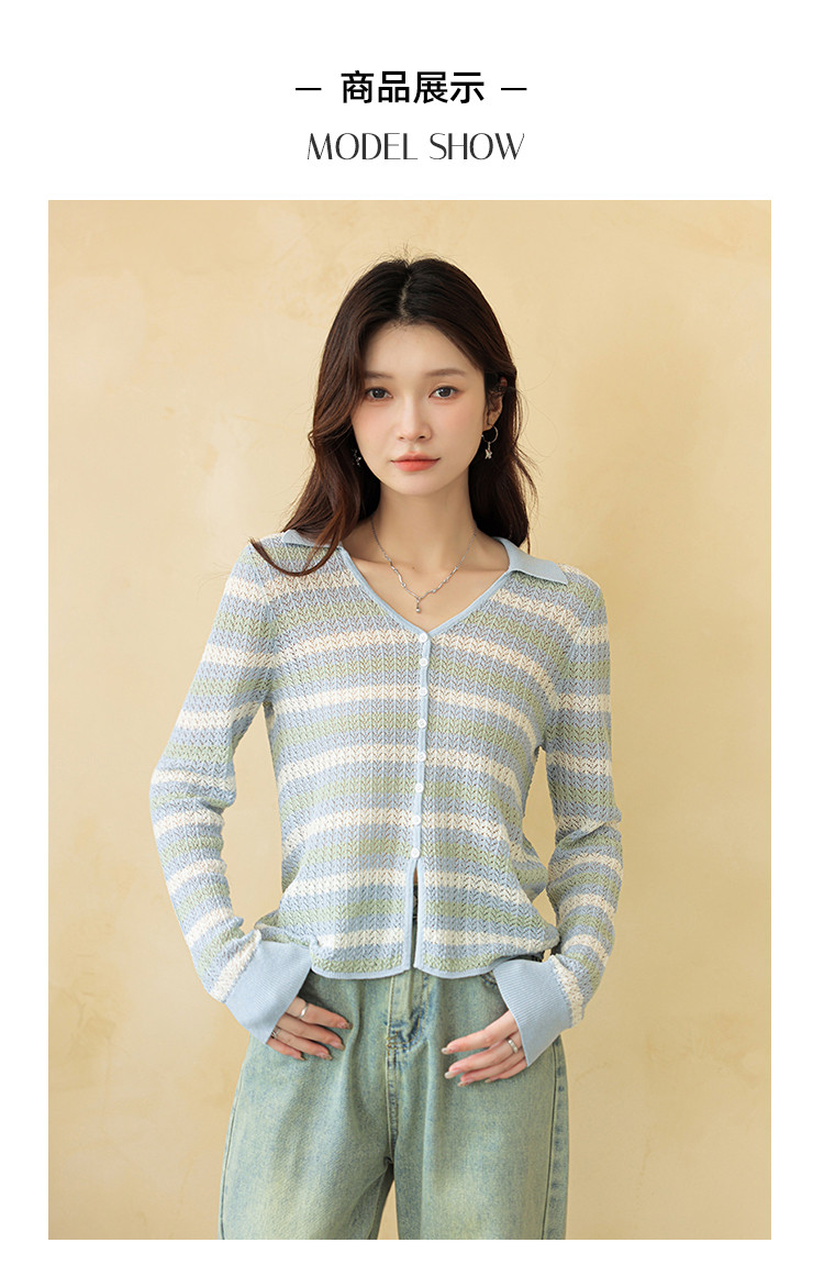 含天丝季撞色空调衫薄翻领针织开衫外穿温柔长袖针织上衣 830339