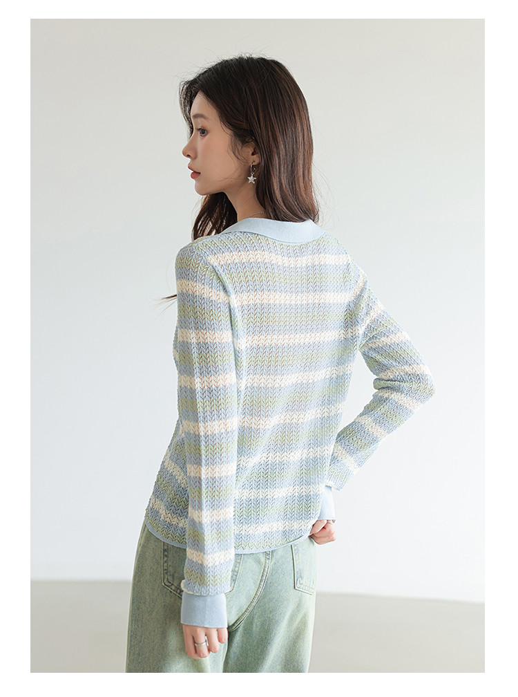 【高智感通勤线衫】春撞色Polo领藏肉弹力小个子针织衫女上衣 205313