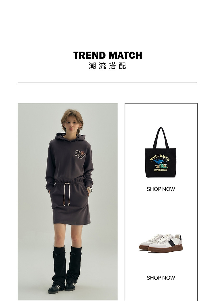 商品名称:小熊春季连帽卫衣连衣裙收腰时尚复古裙女装 317697