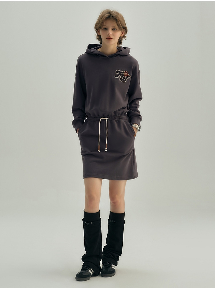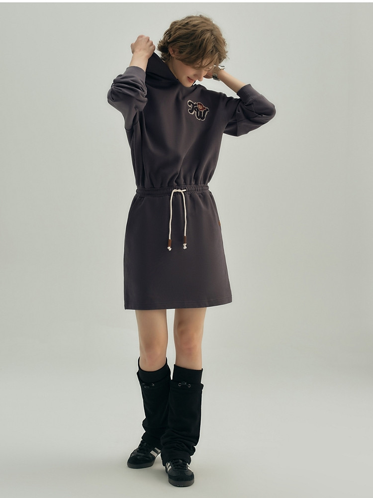小熊春季连帽卫衣连衣裙收腰时尚复古裙女装 317697