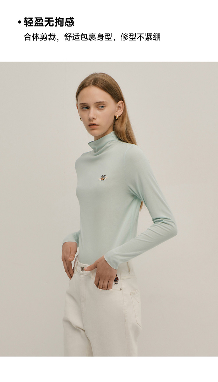 商品名称:女式T恤小熊秋冬随心裁发热肌底衣灰色T恤白色上衣打底衫女 067841